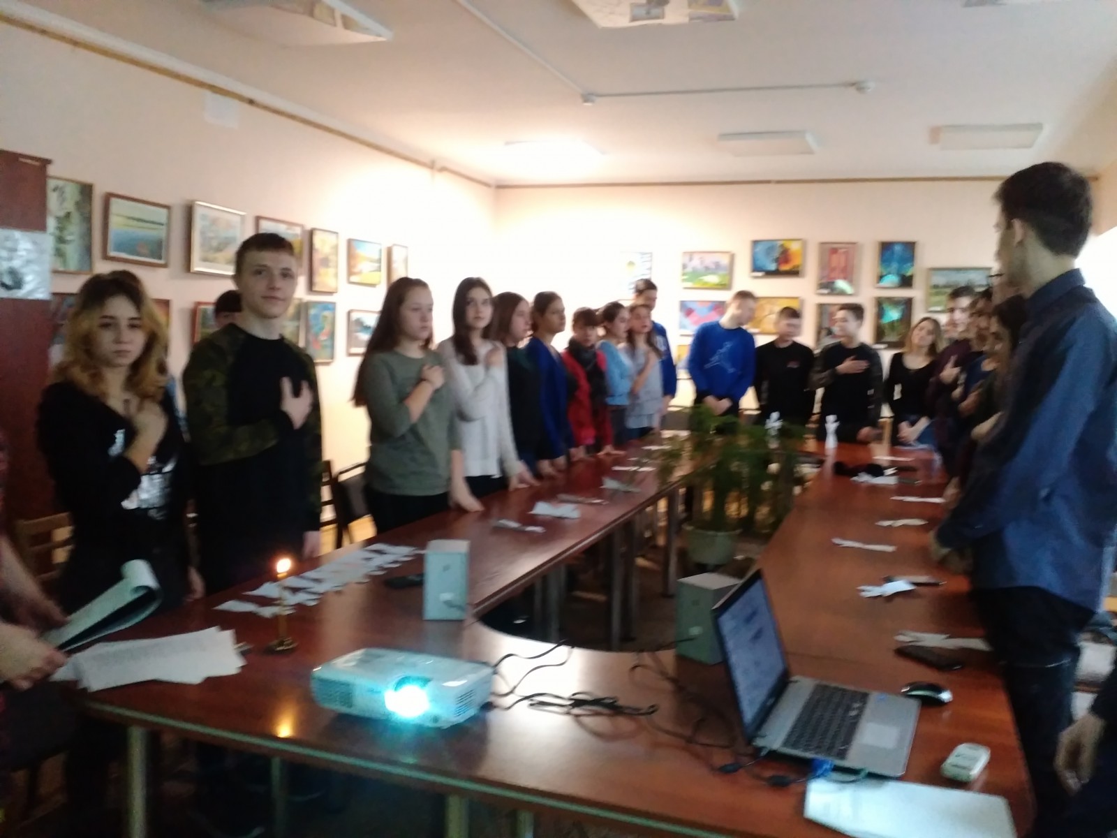 Після вшанування пам’яті загиблих героїв хвилиною мовчання всі разом заспівали Державний Гімн України. Пам’ять про ті жахливі події має жити, щоб не повторилось подібне, щоб боротись і будувати гідне життя у рідній країні. Патріотичний вплив справила на присутніх творчість, навіяна тими подіями - через пісні відомих гуртів та флешмоб - прочитання учнями поезій, написаних 20 -22 лютого 2014 на Майдані.