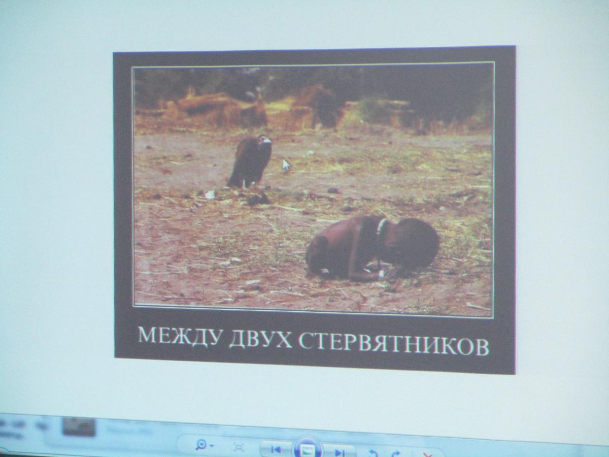 Присутні переглянули слайди відомого фото, що визвало суперечки у всьому світі, а також фото самого автора та схожі за даною темою фотографії.