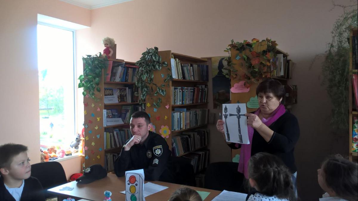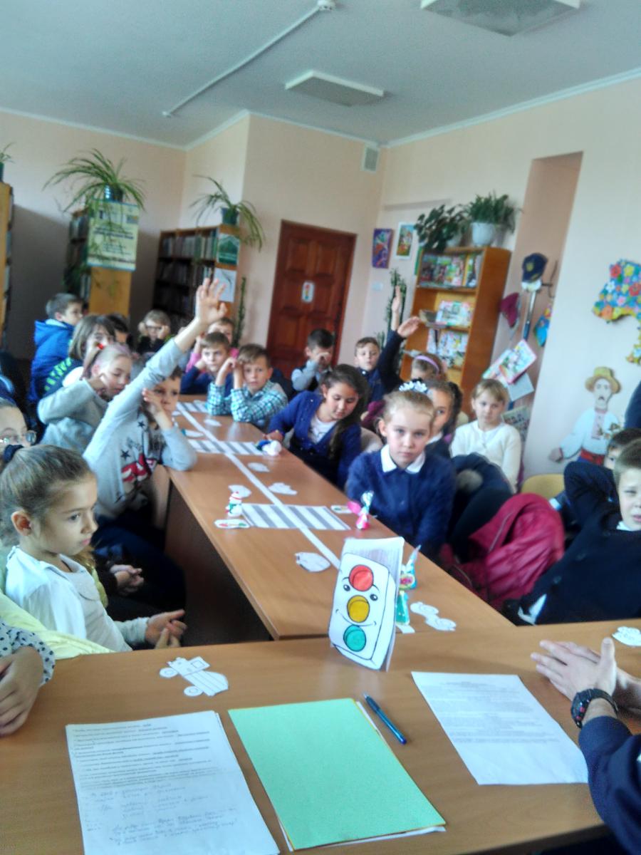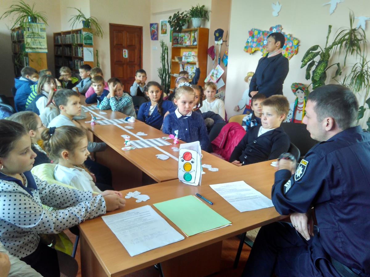 Провідний бібліотекар філії Ніна Бахмат підготувала та разом з поліцейським Іваном Рудем провела годину безпеки «Я і вуличний рух» для учнів 3-А класу (кл.керівник Лебідь В. М.). Бібліотекар розповіла історію виникнення правил дорожнього руху та світлофора; провела гру «Світлофор». Сержант поліції познайомив дітей з правилами дорожнього руху, розповів, що робити в неочікуваних ситуаціях та головне, як їх уникнути. Діти дізналися про види переходів, про правила для пішоходів, правила поведінки в транспорті. Дуже швидко захід перейшов в формат діалогу, адже у дітей було надзвичайно багато запитань та своїх історій з правил безпеки руху.
