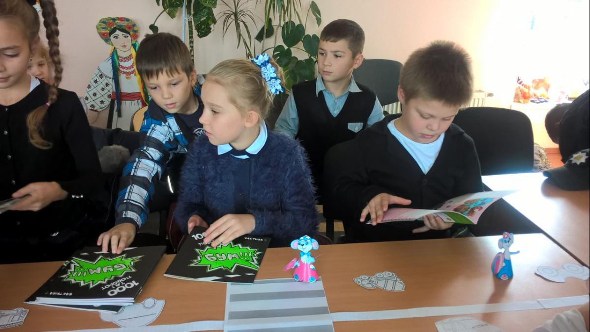 Вікторина, проведена бібліотекарем для закріплення отриманих знань стала інструментом веселого екзамену. І третьокласники пройшли його гідно, тому що знали правильні відповіді на запитання. Гість прокоментував деякі відповіді і нагородив всіх дітей дитячими книгами «1000 та 1 поворот», в яких йдеться про правила поведінки на дорозі.