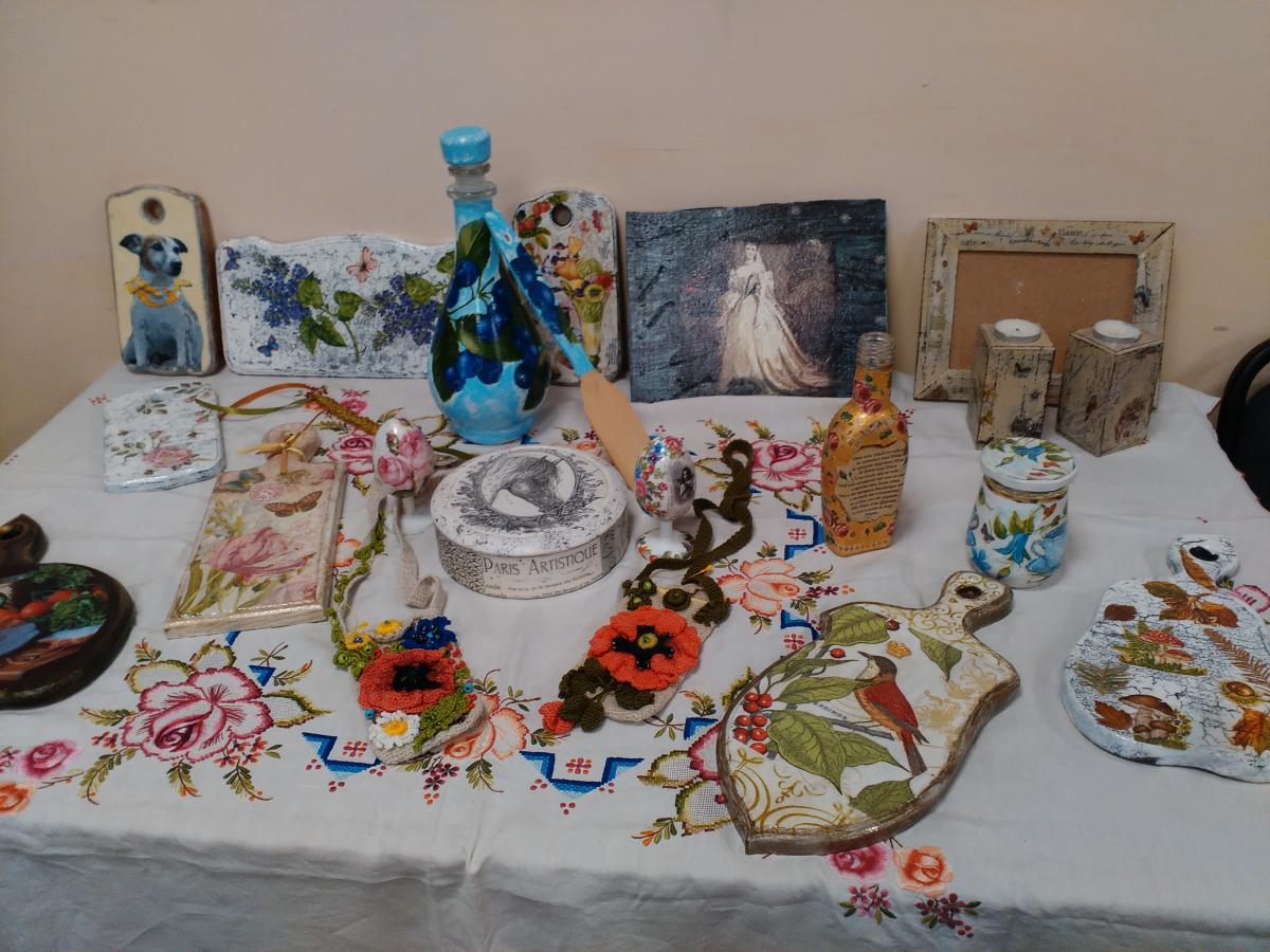 В фойє бібліотеки було розгорнуто виставку виробів декоративно-вжиткового мистецтва. Унікальну виставку сорочок та рушників представили Оксана Гордієць та Катерина Левенко (учасниці тріо «Рідна пісня»); колекцію писанок привезла з Переяслава Капітоліна Шевченко; майстрині з ГО «Новий схід» представили власні декоративні поробки. Знана бориспільська майстриня-лялькарка Олена Кравчун дивувала присутніх своїми ляльками в національних строях. Привертали увагу і захоплення художні вироби Людмили Кущ, виконані в техніці інкрустації та розпису.