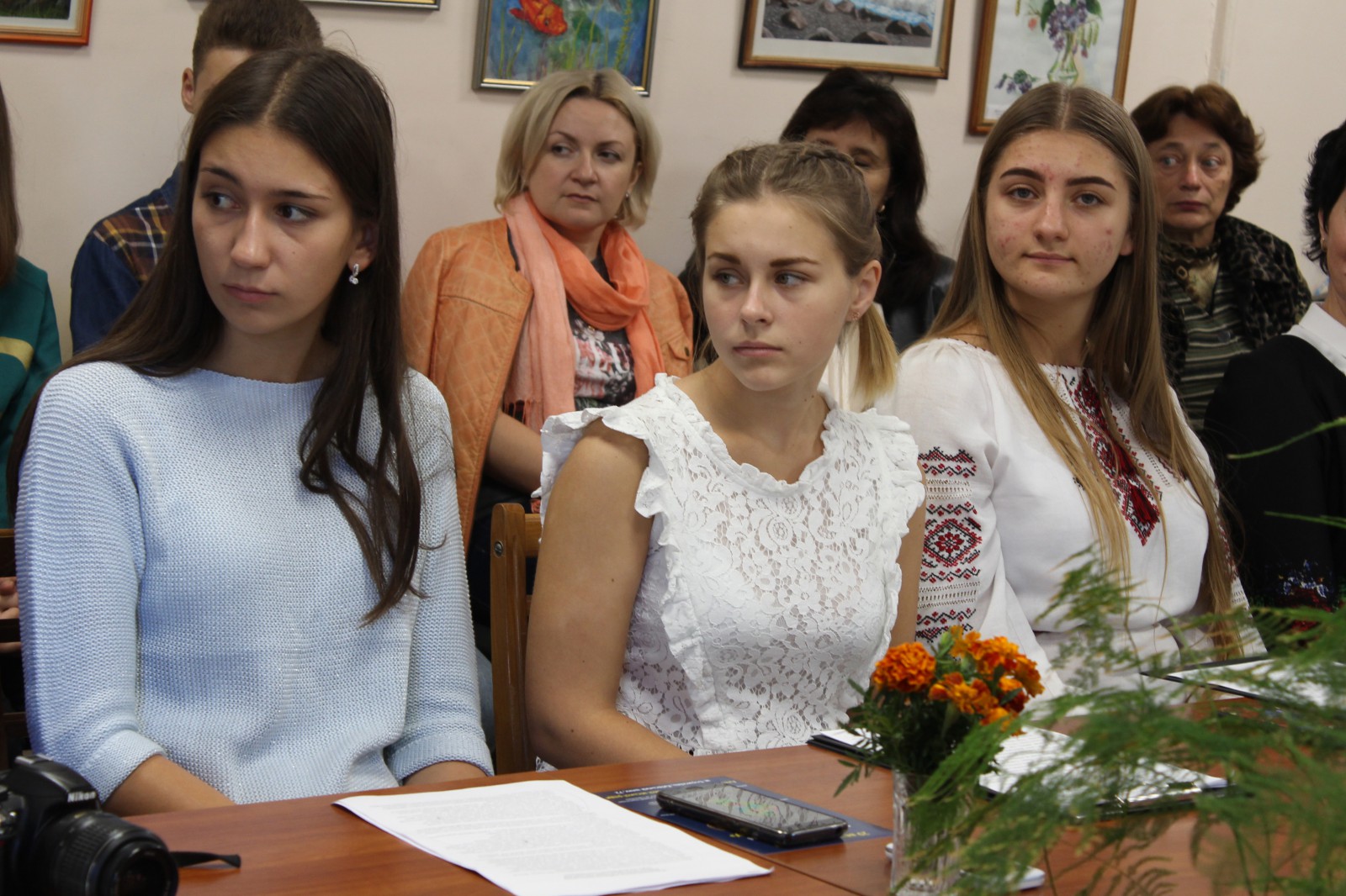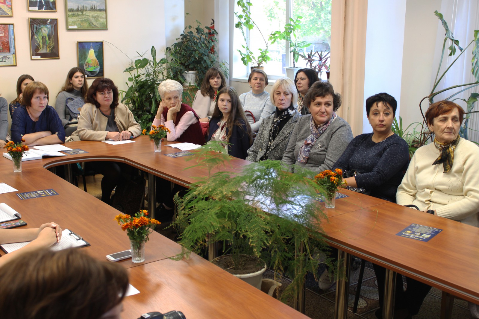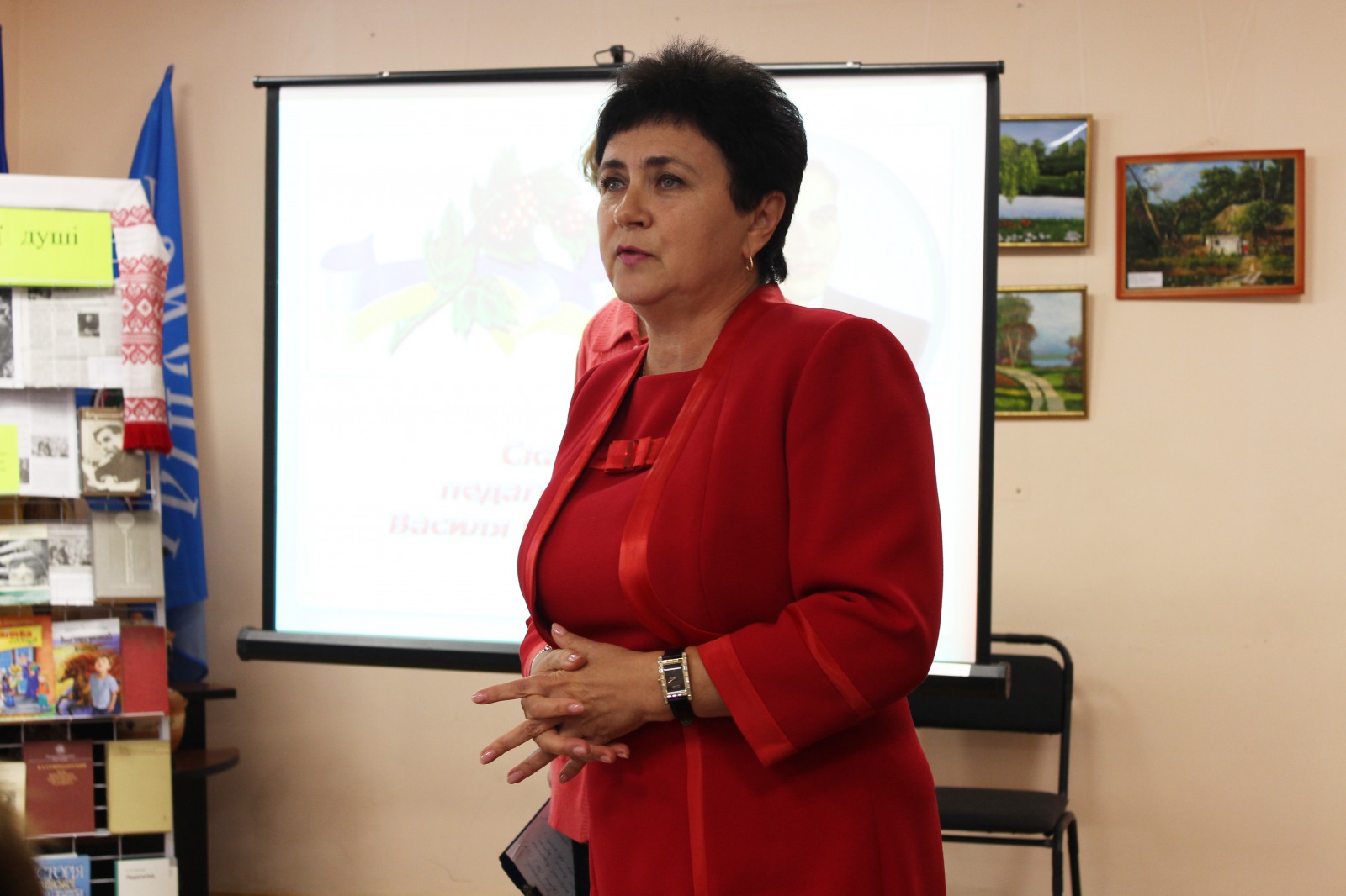 Завідувач міського методичного кабінету Управління Освіти та науки Ніна Ковадло зазначила, що Василь Сухомлинський є видатним педагогом з 35- річним стажем, автором книг, перекладених 53 мовами світу, що надруковані загальним тиражем 15 млн. примірників. Одним із його принципів було «віддати серце дітям». Він стверджував: «учні - це збільшене скло незнання вчителя».