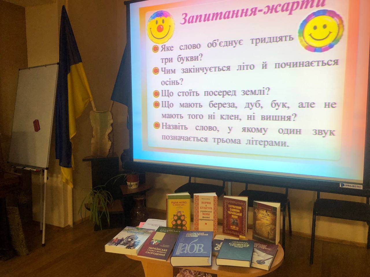 Директор бібліотеки Жанна Кручиніна порекомендувала присутнім книги на допомогу вивченню української мови.