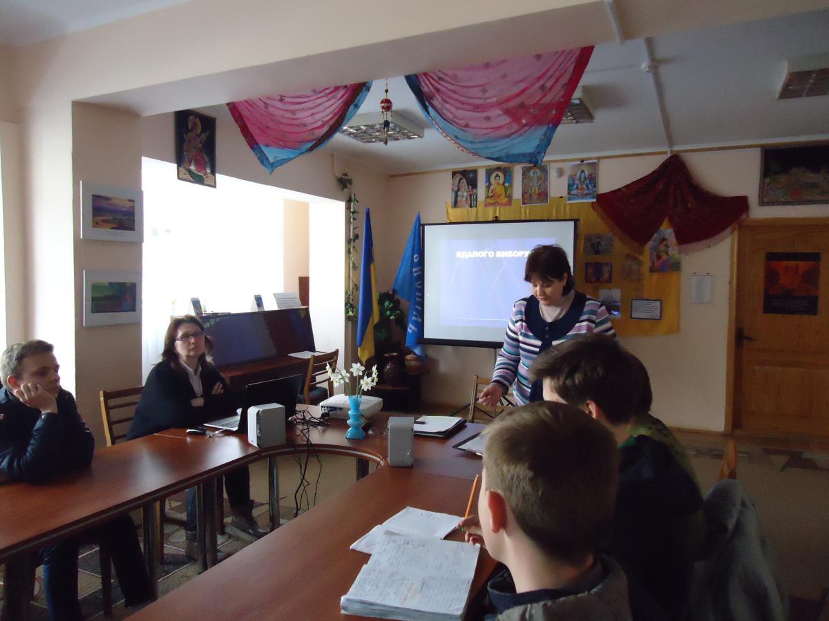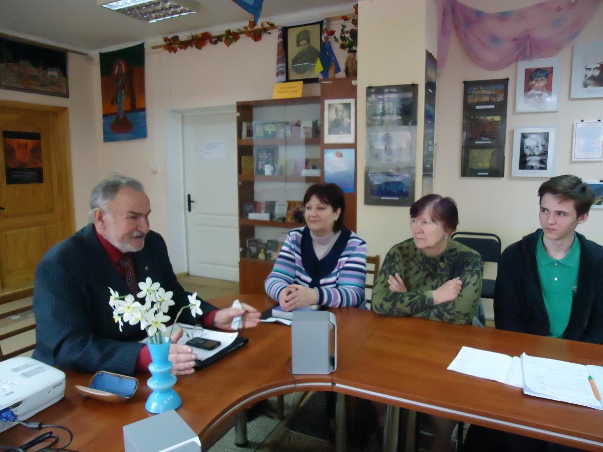 13 квітня в міській бібліотеці проведено День інформації «Бібліотека – компас у світі професій». Одним із заходів була лекція Леонтія Івановича Сандуляка, науковця, професора, доктора медичних наук - «Структурні рівні організації матерії і виникнення життя на Землі». В Інформаційно-довідковому центрі бібліотеки зібрались старшокласники, які збираються в майбутньому вступати до ВУЗів природничого плану та ті, кого цікавлять природничі науки.