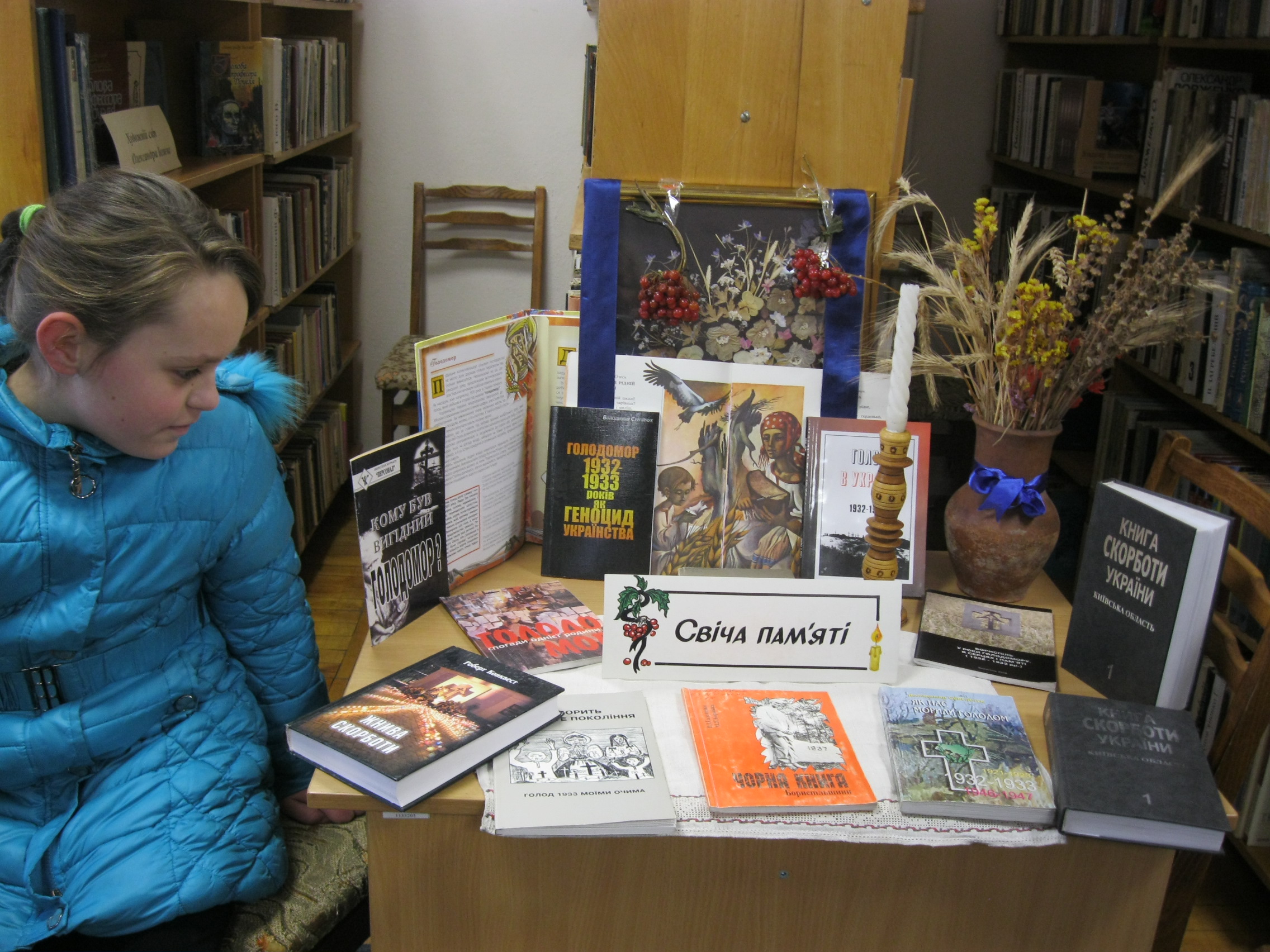 Вшанували пам'ять жертв голодомору і в міській дитячій бібліотеці. Для наших читачів-учнів представлена виставка-інсталяція «Свіча пам’яті», на якій підібрана література про трагічні наслідки радянського режиму. Відбувся огляд літератури «Геноцид українства». Сподіваємось, що ці трагічні події будуть повчальними для майбутніх поколінь.