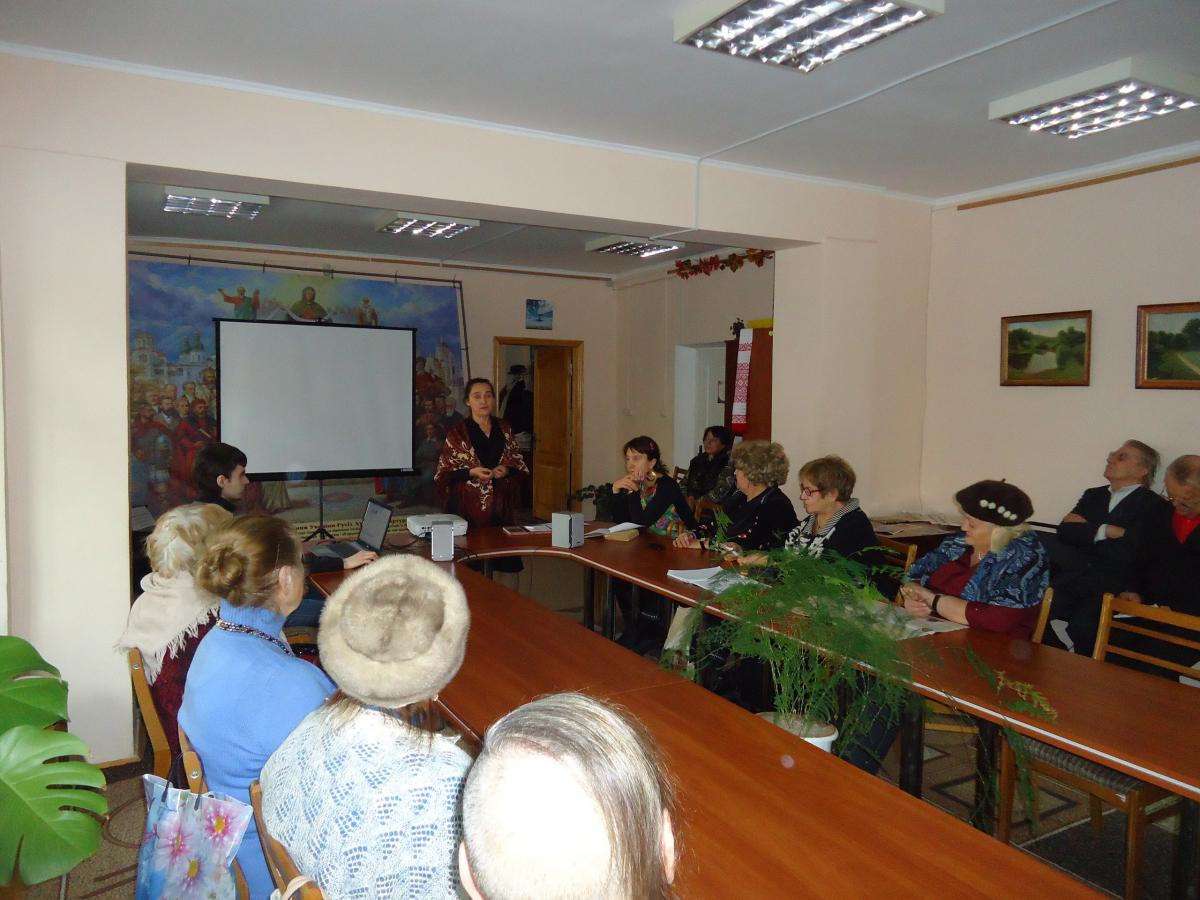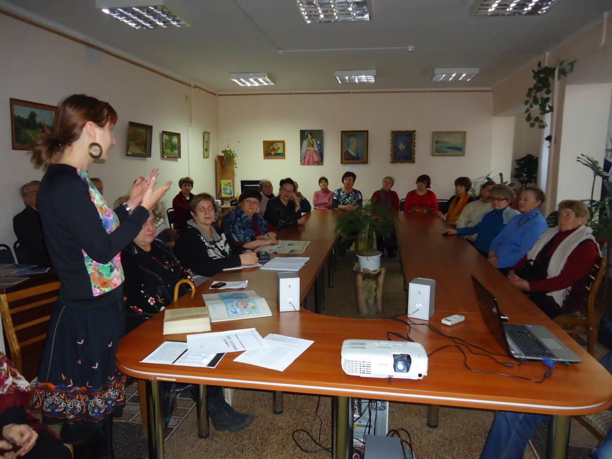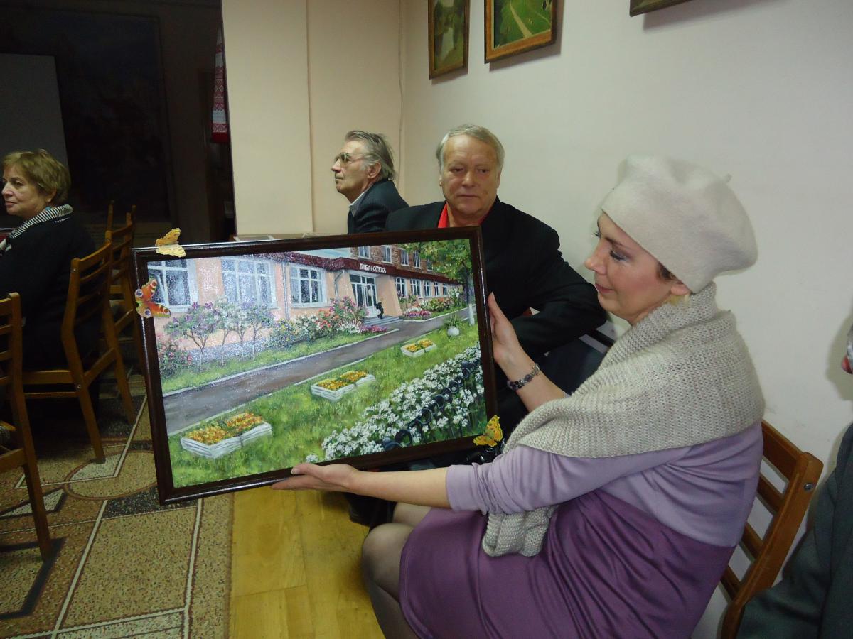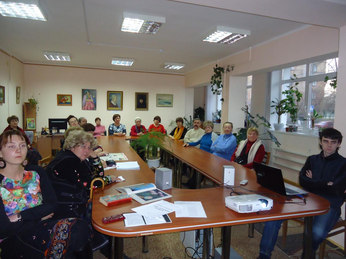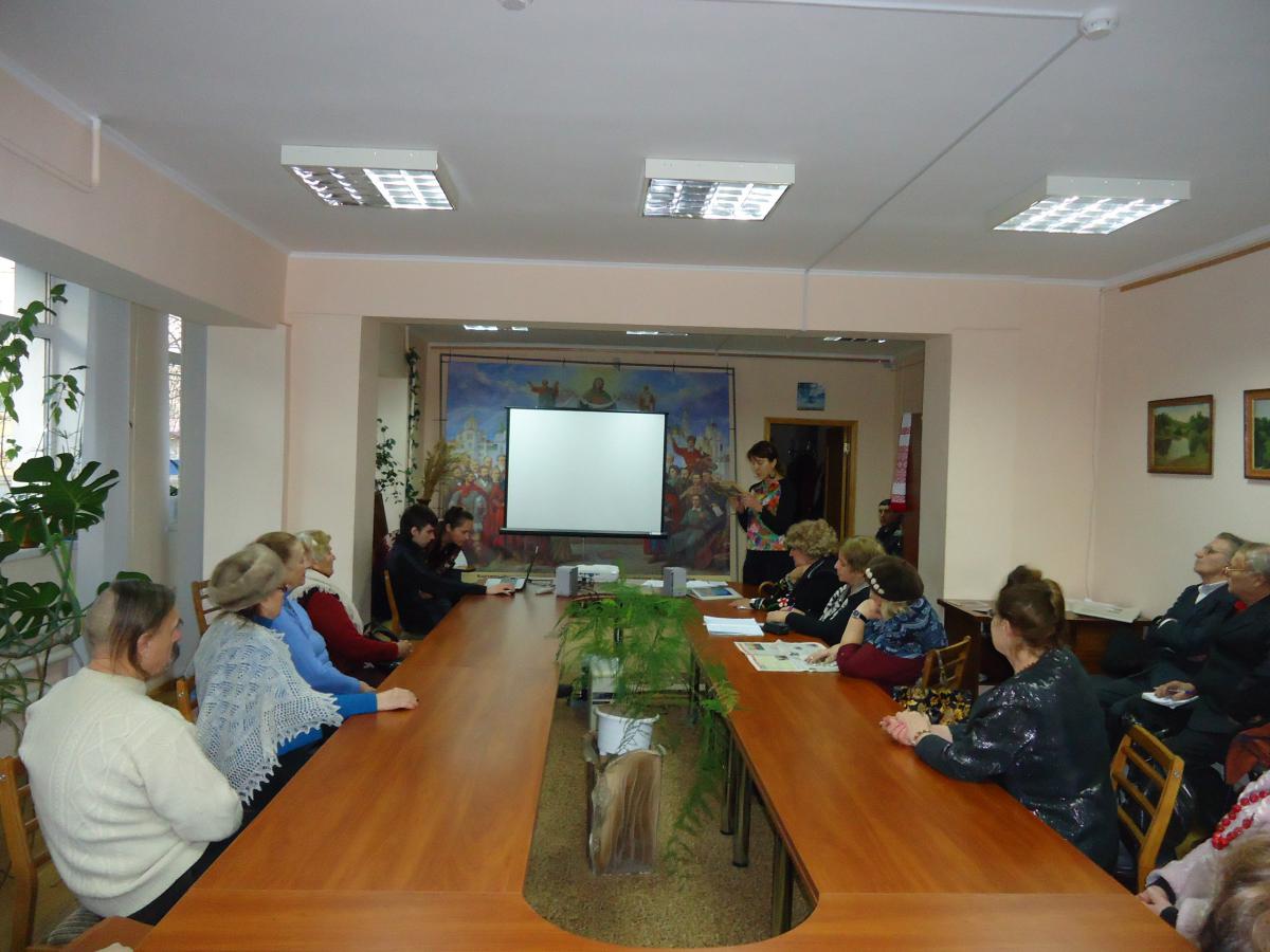 Розповідь про художницю ілюструвалась переглядом відео та уривків кінофільмів, присвячених Катерині Білокур. Своєю неповторністю і щирістю милували присутніх картини, показані на широкому екрані за допомогою проектора. Згодом захід змінив формат – почався цікавий обмін враженнями відвідувань мистецької виставки живопису Катерини Білокур в Мистецькому Арсеналі, картинної галереї в Яготині, музею-садиби художниці в селі Богданівка. На згадку про вечір було зроблене фото.