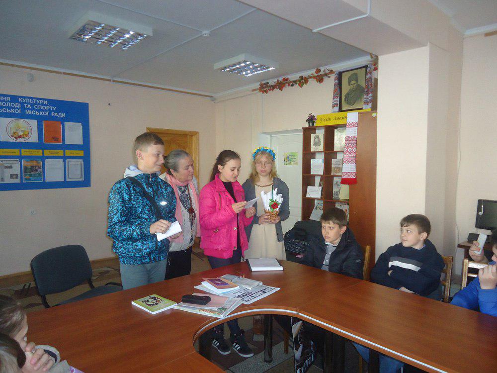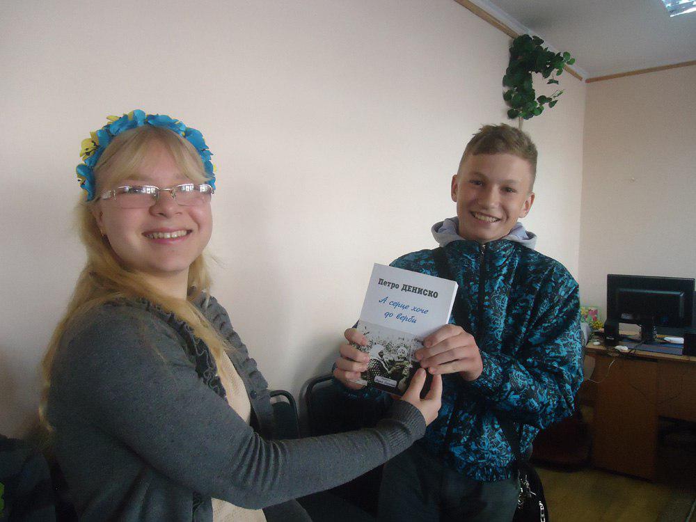 Затамувавши подих слухали діти новели Світлани Тимченко «Коник» та «Галька-тореадор». А ще учні випробували свої поетичні здібності, взявши участь у цікавій грі «Влучна рима», після чого отримали «ліричний гостинець».(це вже традиція бібліотеки- складати у маленький прикрашений кошик згорнуті аркуші з віршами місцевих поетів). Діти охоче зачитували поезії Миколи Боровка, Світлани Дідух-Романенко, Володимира Литвина, Петра Дениска, Галини Писанки. З радістю приймали учні в подарунок книги Миколи Боровка та Петра Дениска.