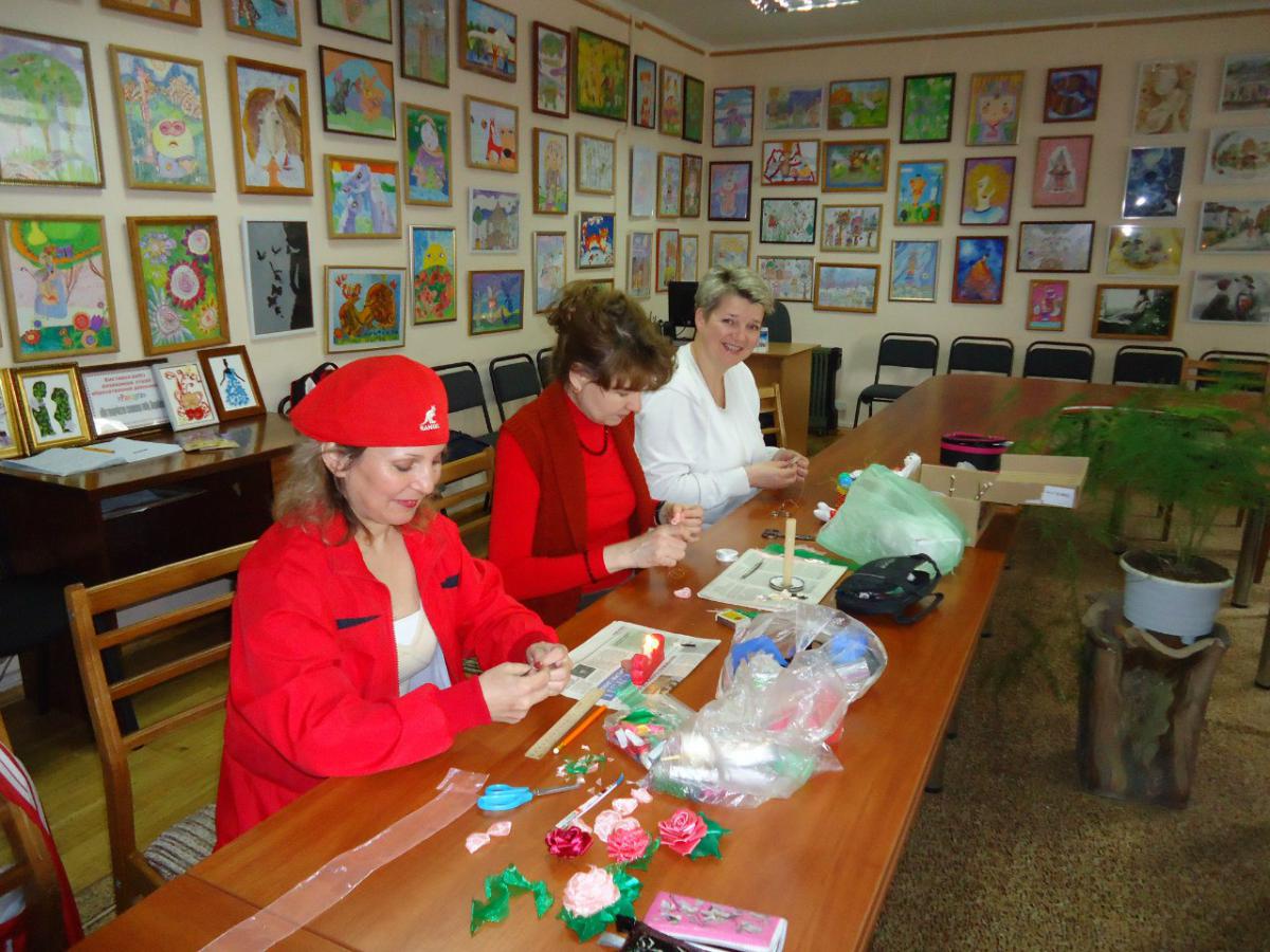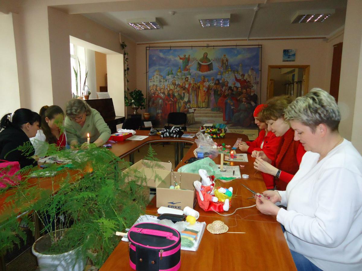 Цього четверга учасники бібліотечного клубу «Територія творчості» готувались до Великодніх свят. Людмила Астаф’єва ділилась власним досвідом як без фінансових витрат прикрасити стіл, святковий кошик, зробити яскраві та неповторні подарунки рідним і друзям