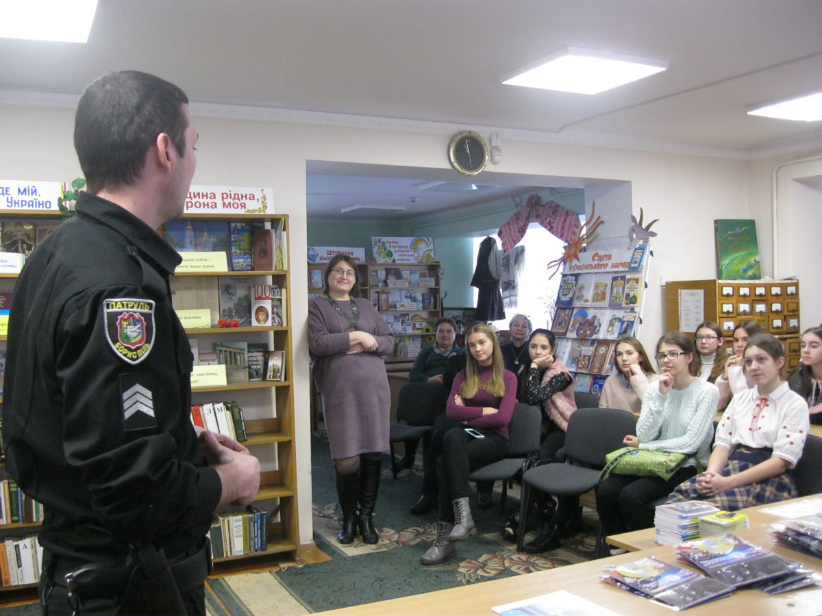 22 грудня 2017 користуватися своїми правами під час спілкування з поліцією вчилися підлітки ЗОШ № 6 у рамках програми ПОЛіС «Поліція і спільнота». В міській дитячій бібліотеці відбулася зустріч з представником Бориспільської патрульної поліції, офіцером Рудьом Іваном Васильовичем та учнями 10-А та 10-Б класів ЗОШ № 6. Зустріч-діалог «Навчись поважати закони держави» провели у дискусійно-гральній формі, адже жива бесіда значно краще сухої теорії.
