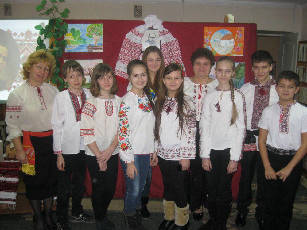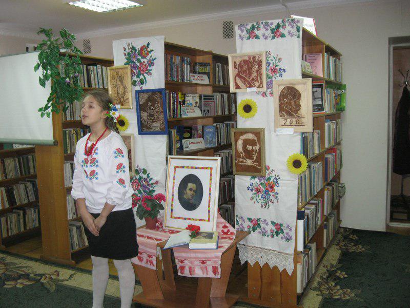 Ведуча заходу бібліотекар Данчук Л.І. розповіла присутнім про життєвий і творчий шлях Кобзаря. З вогником в очах читали діти вірші славного Кобзаря та відповідали на запитання вікторини по творчості Т.Г.Шевченка.