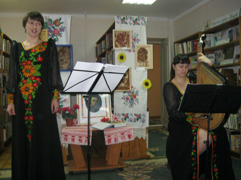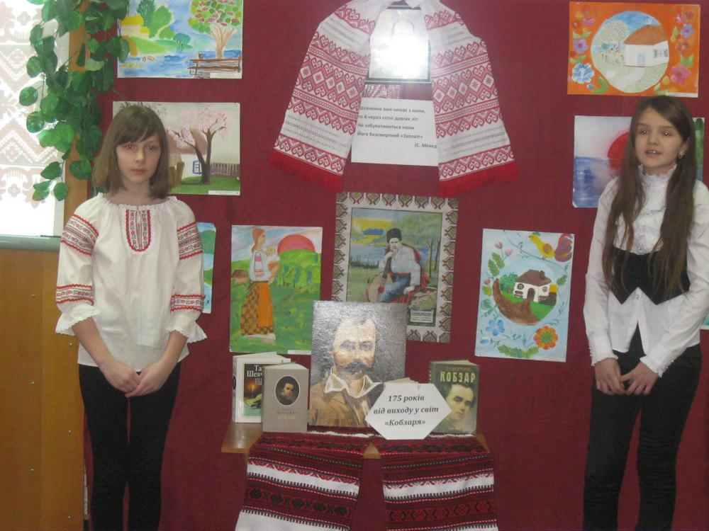 Учні підготували та прочитали вірші видатного поета. Шевченка люблять не тільки діти, а й дорослі. Бібліотекар Руденко Т.Г. також читала вірші Шевченка, любов до яких з дитинства прищепила їй мама. Велику допомогу у проведенні заходу надали викладачі Бориспільської дитячої музичної школи. Діти із захопленням слухали пісні на слова Т.Шевченка у виконанні дуету викладачів Дани Григор’євої та Надії Завалій.