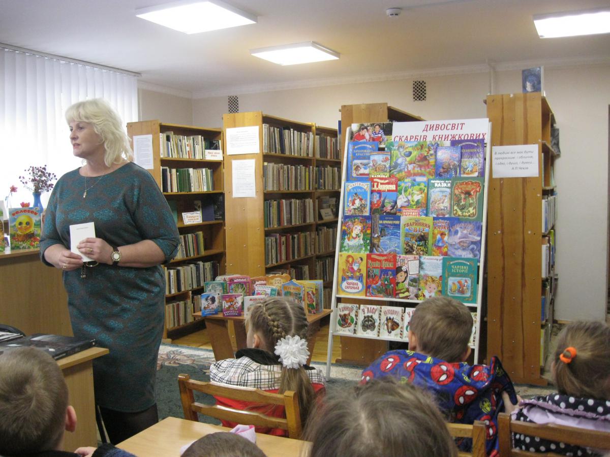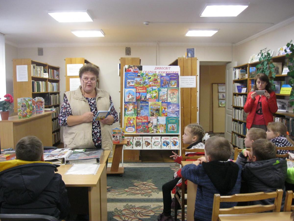 Завідуюча бібліотекою Галина Кузьменко познайомила дітей з бібліотекою та її відділами та розповіла про те, які бувають книги. Бібліотекар Людмила Данчук провела літературну вікторину «З якої ми казки?».