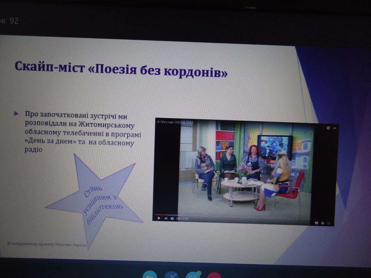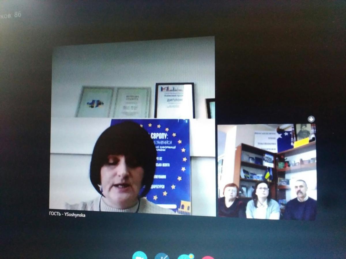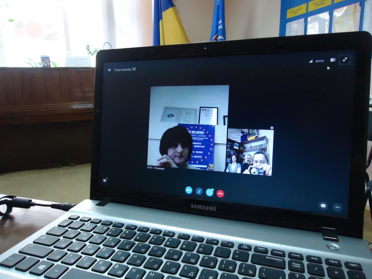На онлайн-зустріч були запрошені відвідувачі бібліотеки, активні учасники бібліотечних заходів Сергій Кравчун та Надія Ігнатенко, яких зацікавив досвід Применка.