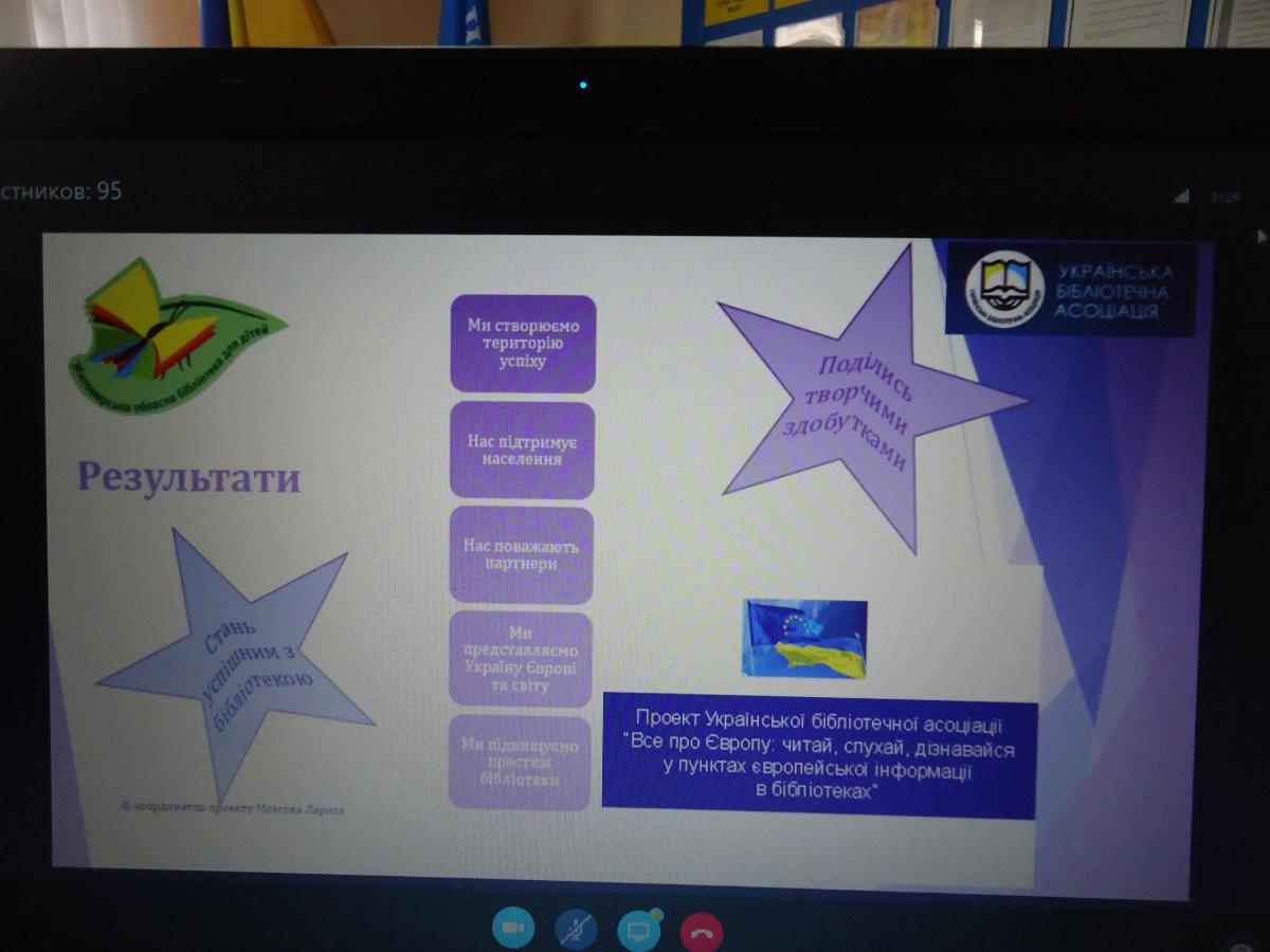Бориспільські учасники веб конференції залишились задоволеними: відвідувачі тим, що отримали досвід участі в великому заході в онлайні, а бібліотекарі - що вдалося продемонструвати гарну роботу Пункту європейської інформації, почути цікаву інформацію для подальшого використання в роботі для задоволення інформаційних потреб громади та відвідувачів ПЄІ.