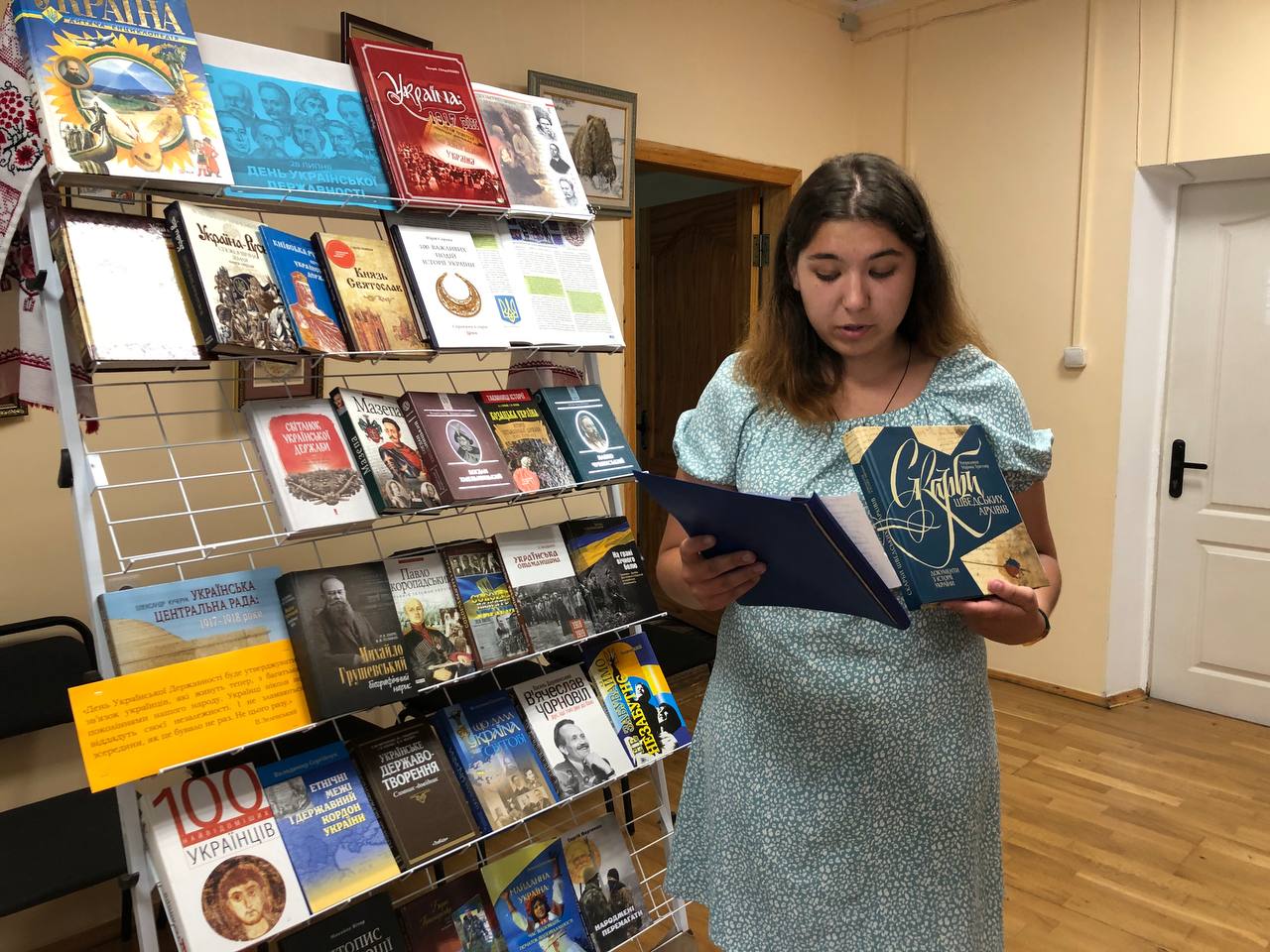 Директор бібліотеки Жанна Кручиніна відкрила захід проникливою поезією Віолетти Кравченко та розповіла про свято державності.