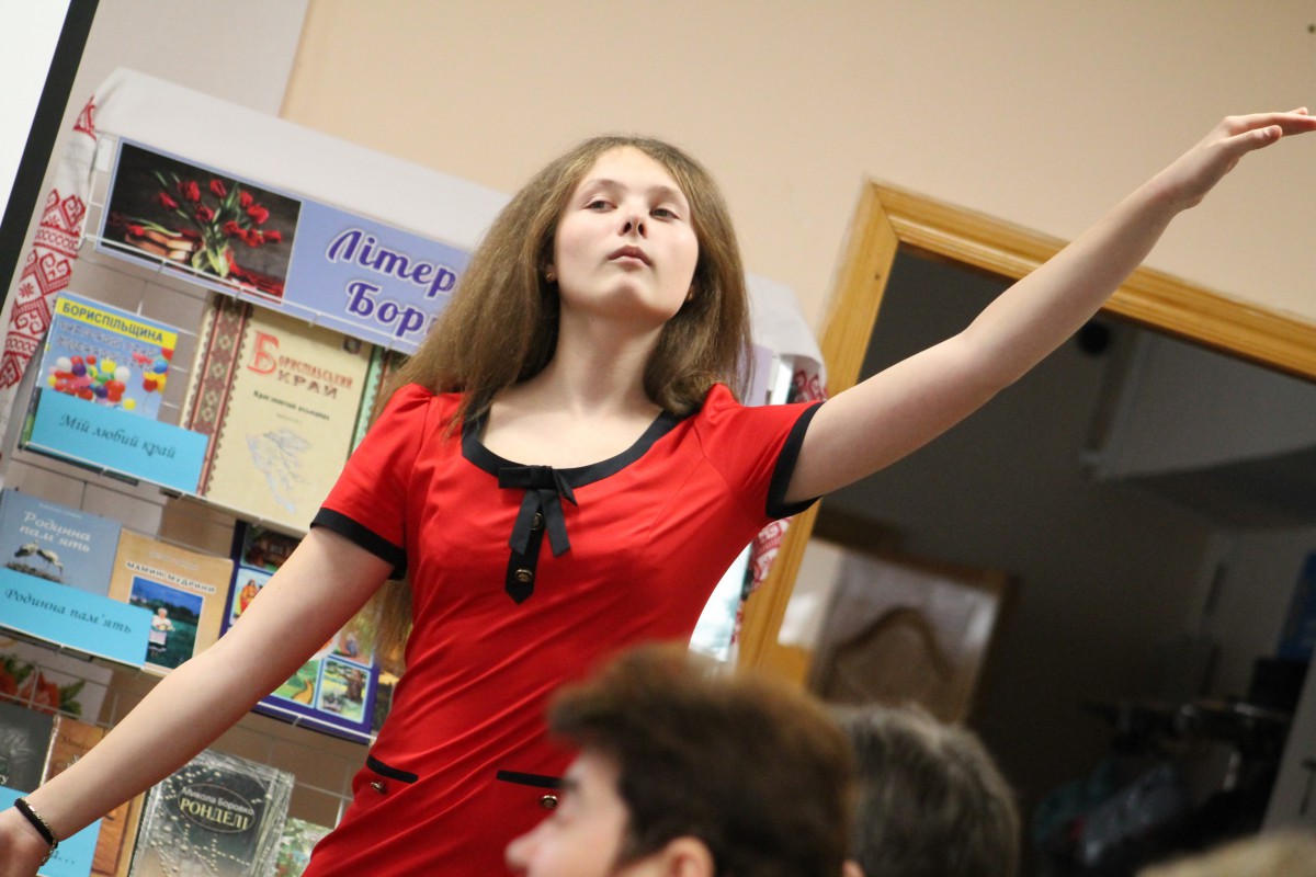 Увесь вечір знані поети Борисполя декламували вірші, долучився до поетичного марафону й театр слова «Україна моя», що діє при центральній бібліотеці. Його вихованці на чолі з керівником Оленою Шкребтієнко вдало отеатралізували твори наших земляків.