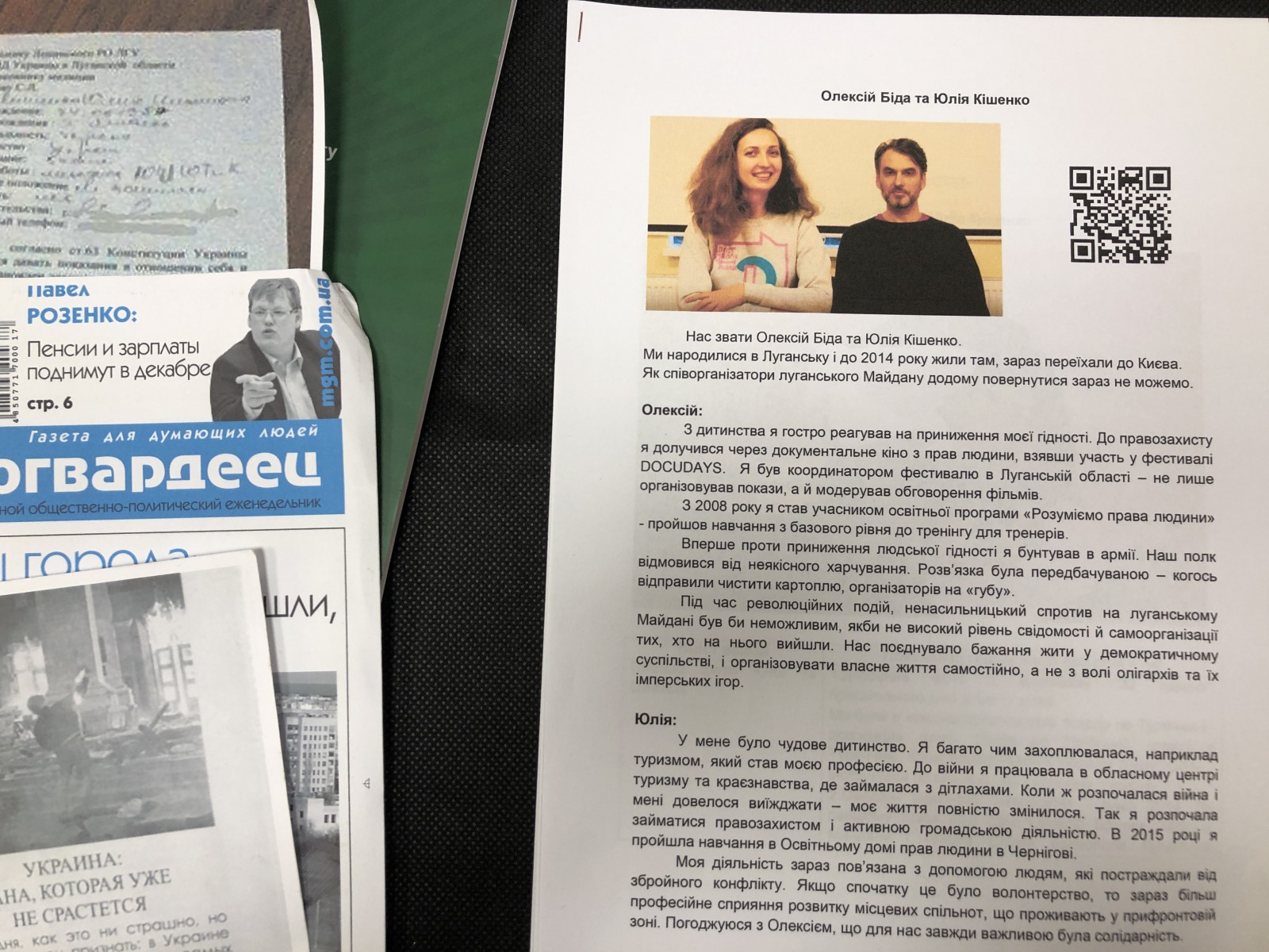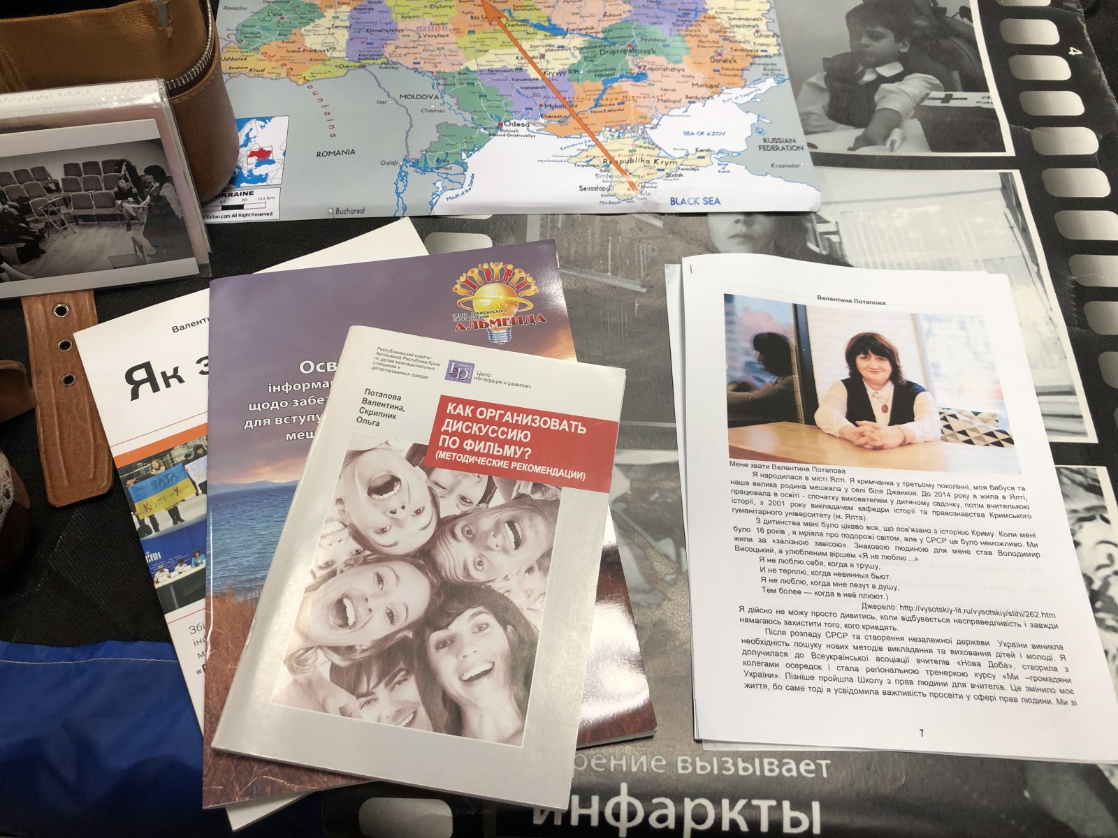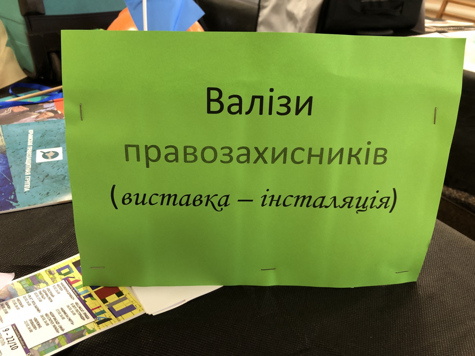Модератор показів фільмів фестивалю в Борисполі Дарина Денисенко роздрукувала кожну історію, і відвідувачі мали змогу не лише переглянути речі з валіз, а й більш детально познайомитися з кожним правозахисником.