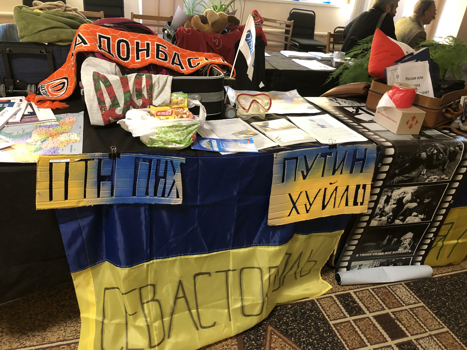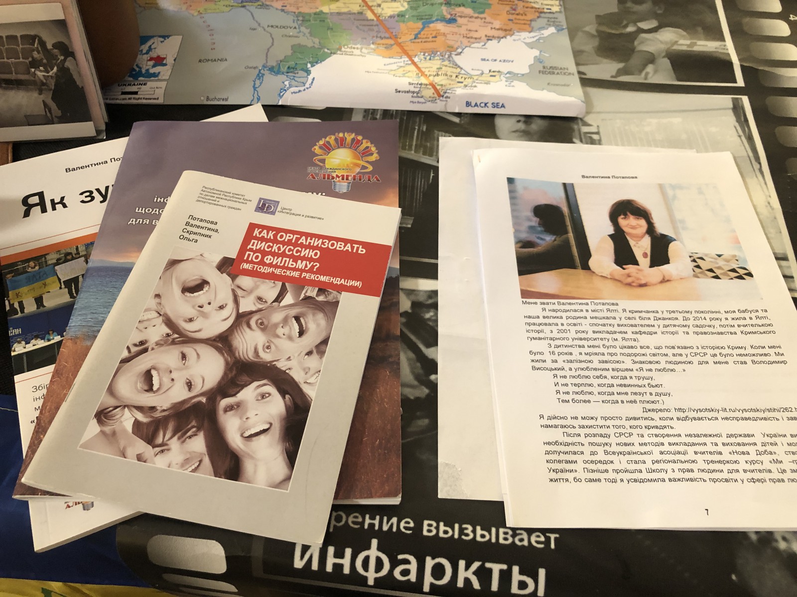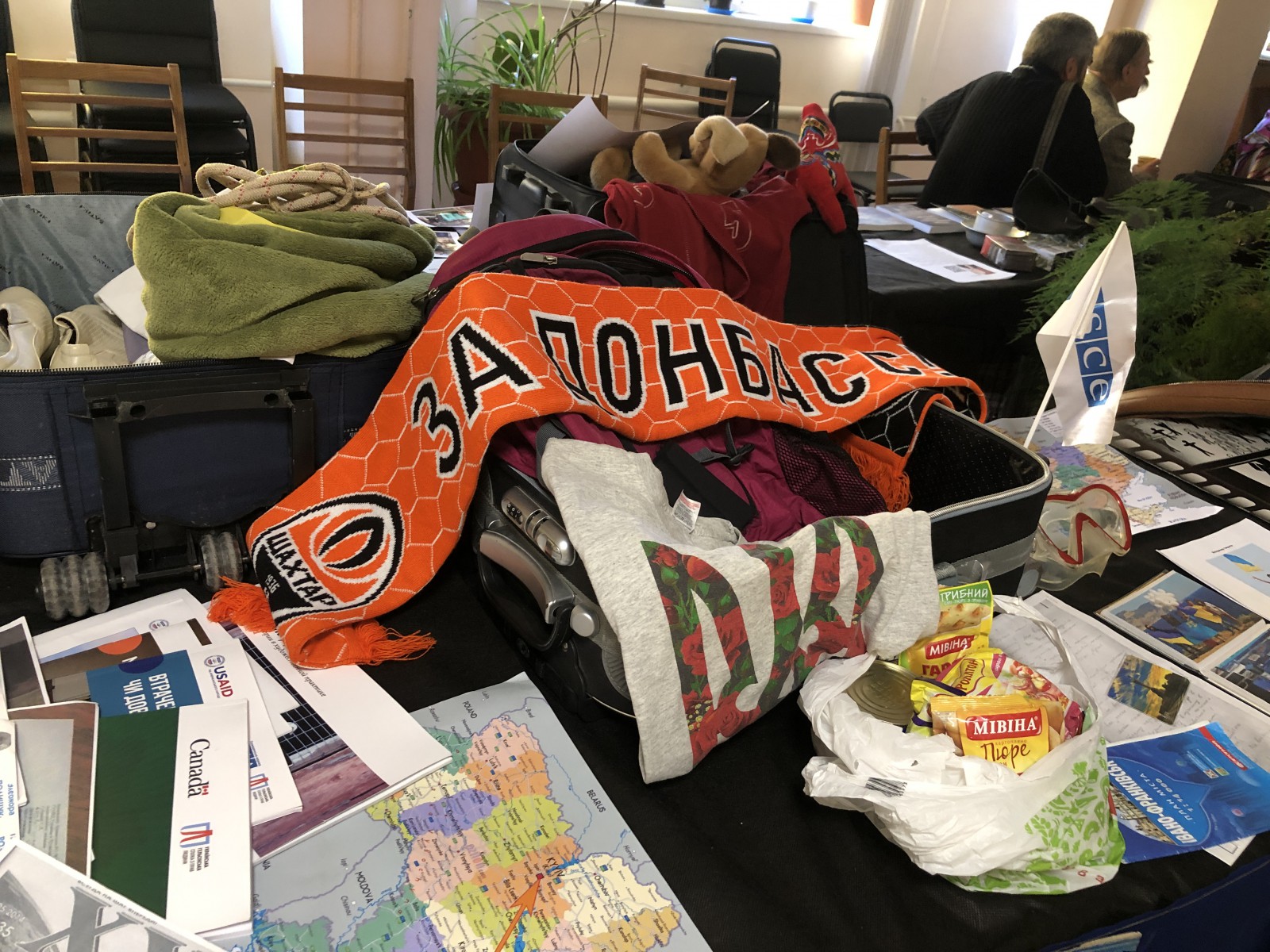 Модератор показів фільмів фестивалю в Борисполі Дарина Денисенко роздрукувала кожну історію, і відвідувачі мали змогу не лише переглянути речі з валіз, а й більш детально познайомитися з кожним правозахисником.
