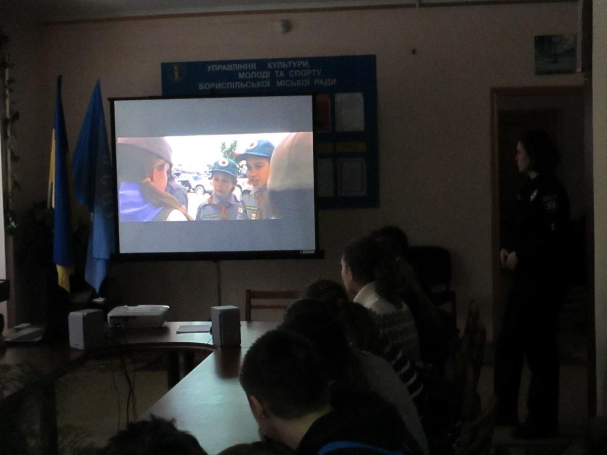 Інспектора патрульної служби надали інформацію дітям про те, в яких випадках вони мають право звернутись за допомогою в Управління соціального захисту в справах дітей в Борисполі (Бежівка, 1).