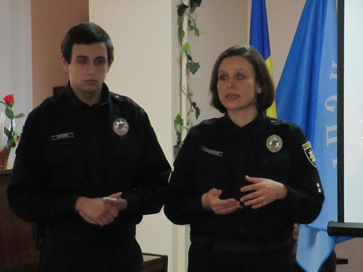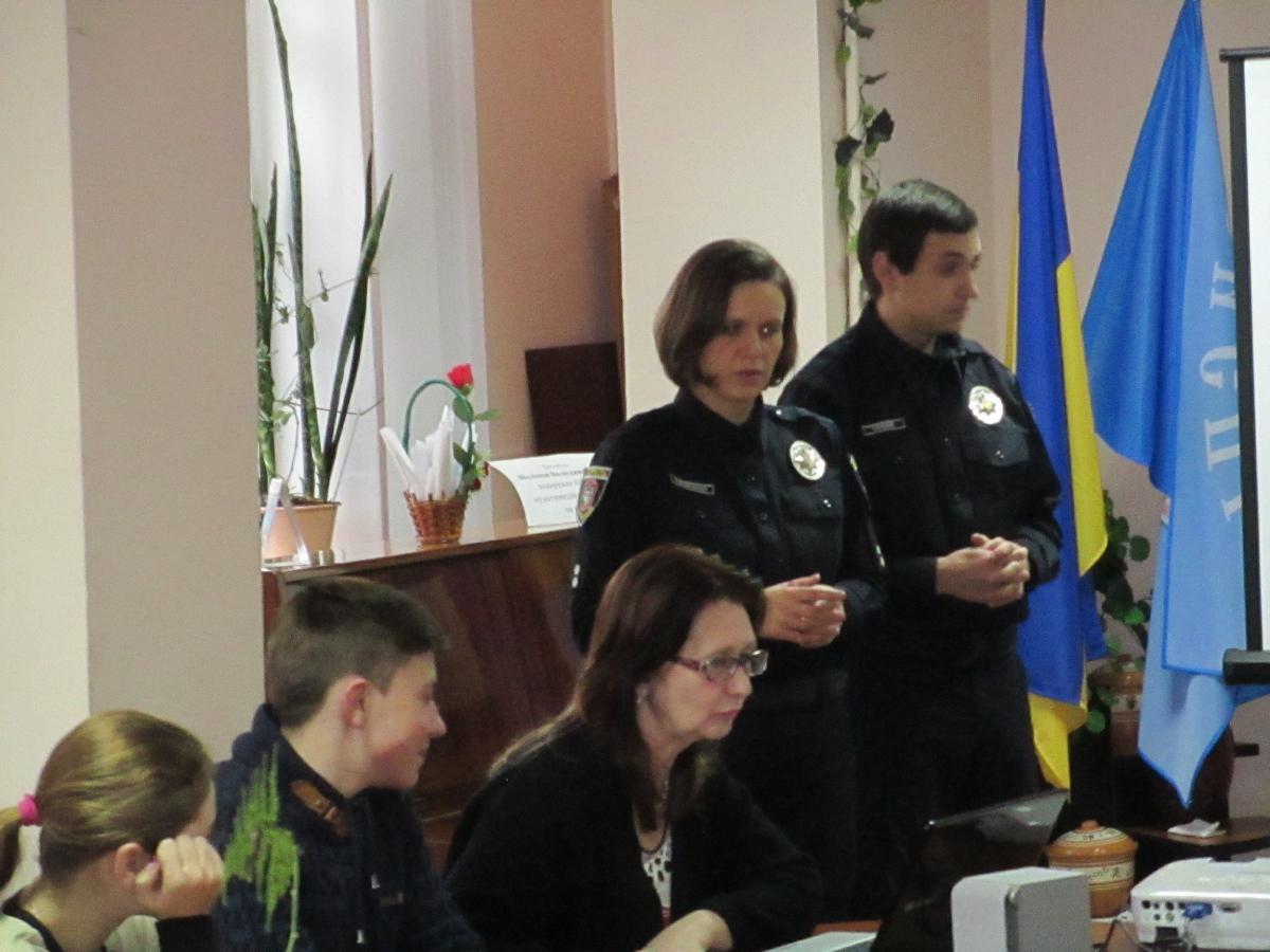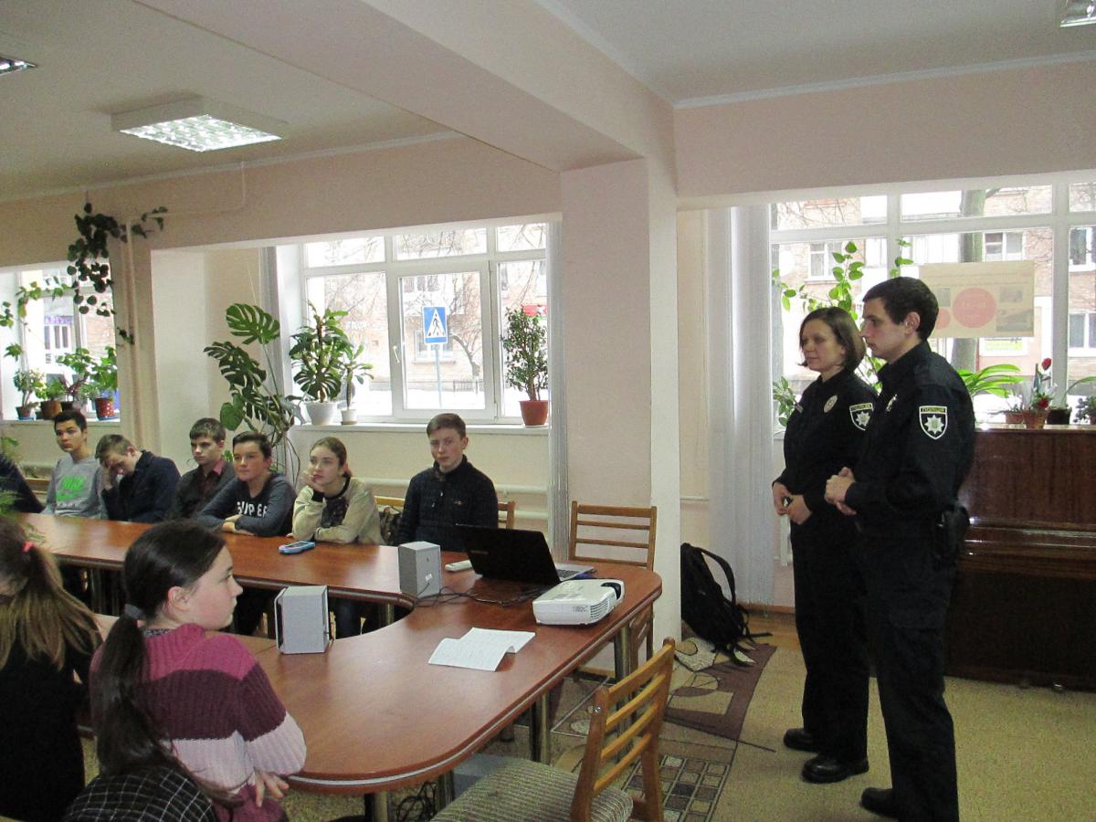 На зустріч з інспекторами патрульної служби лейтенантами Іриною Горобченко та Ігорем Горєлим були запрошені читачі – учні 8 та 10 класів ЗОШ № 1.
