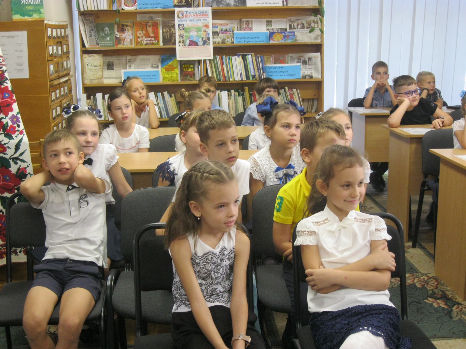Закінчилося сонячне тепле літечко, яке тішило своїм промінням наших маленьких читачів. 13 вересня 2019 до міської дитячої бібліотеки на справжню бібліотечну тусівку «Весь світ з вами, коли ви з книжками» завітали читачі-учні 2-Б класу Академічного ліцею разом з класним керівником Гук Л.В. та своїми батьками
