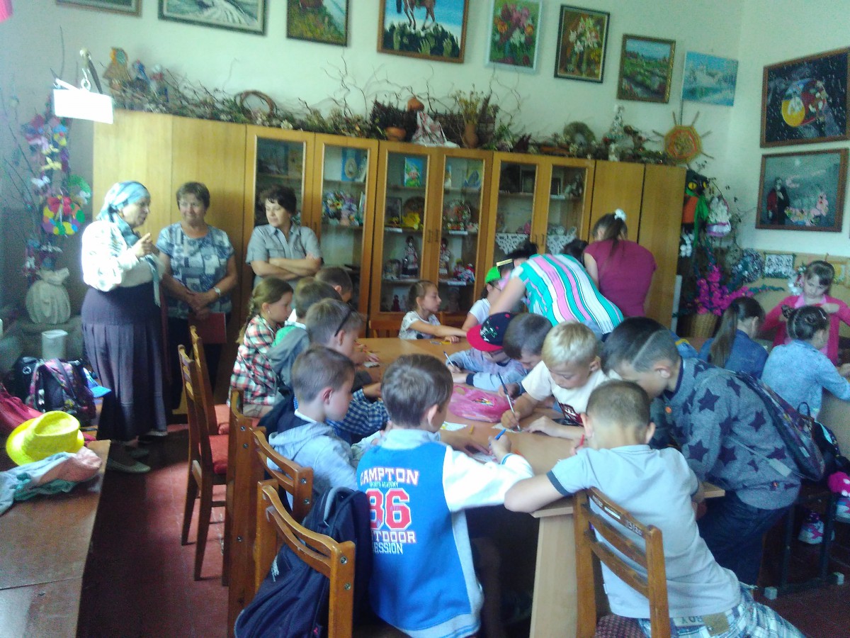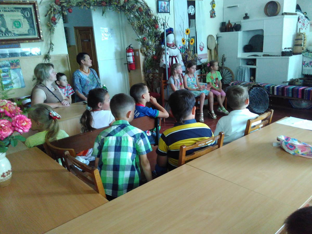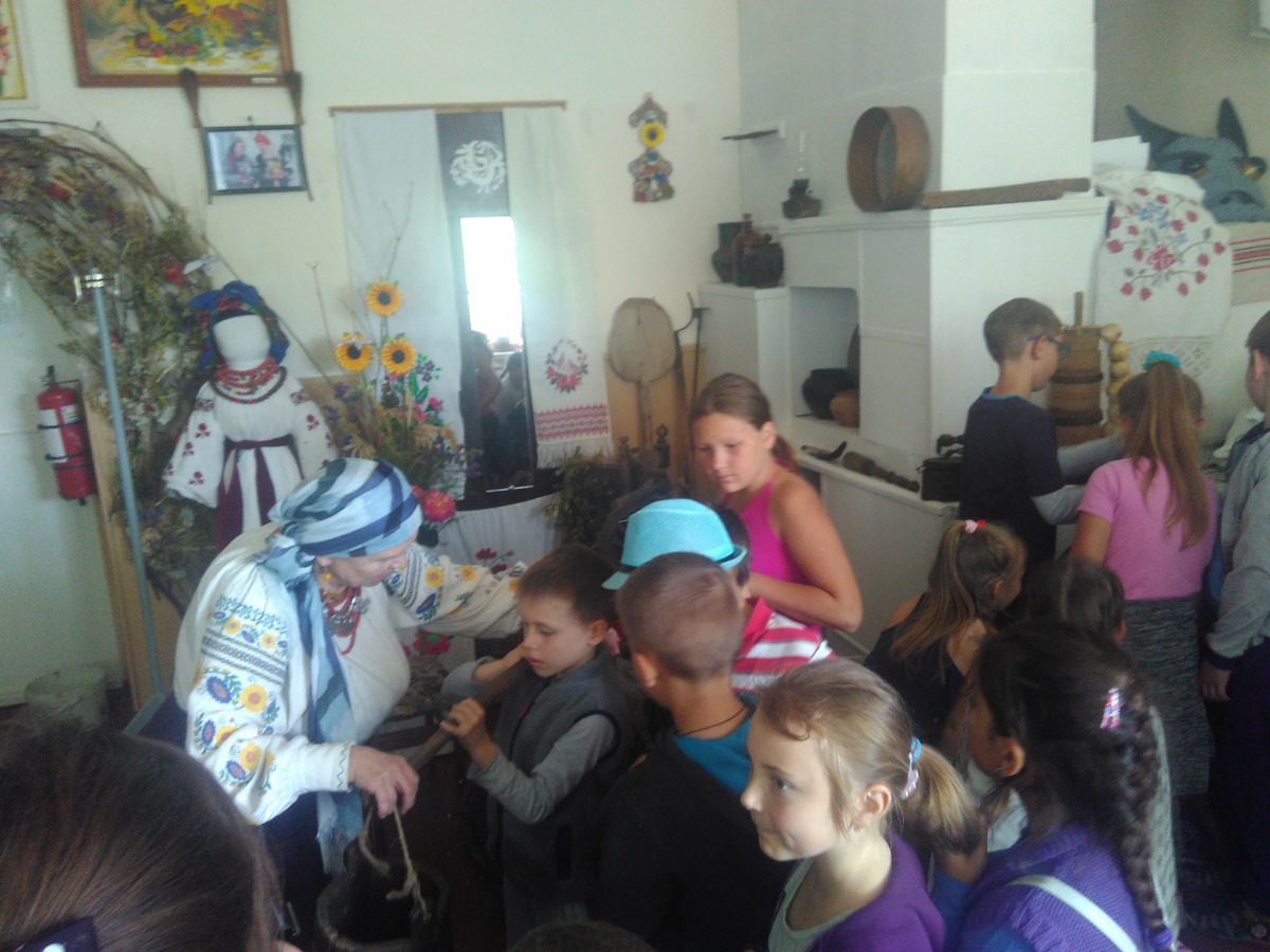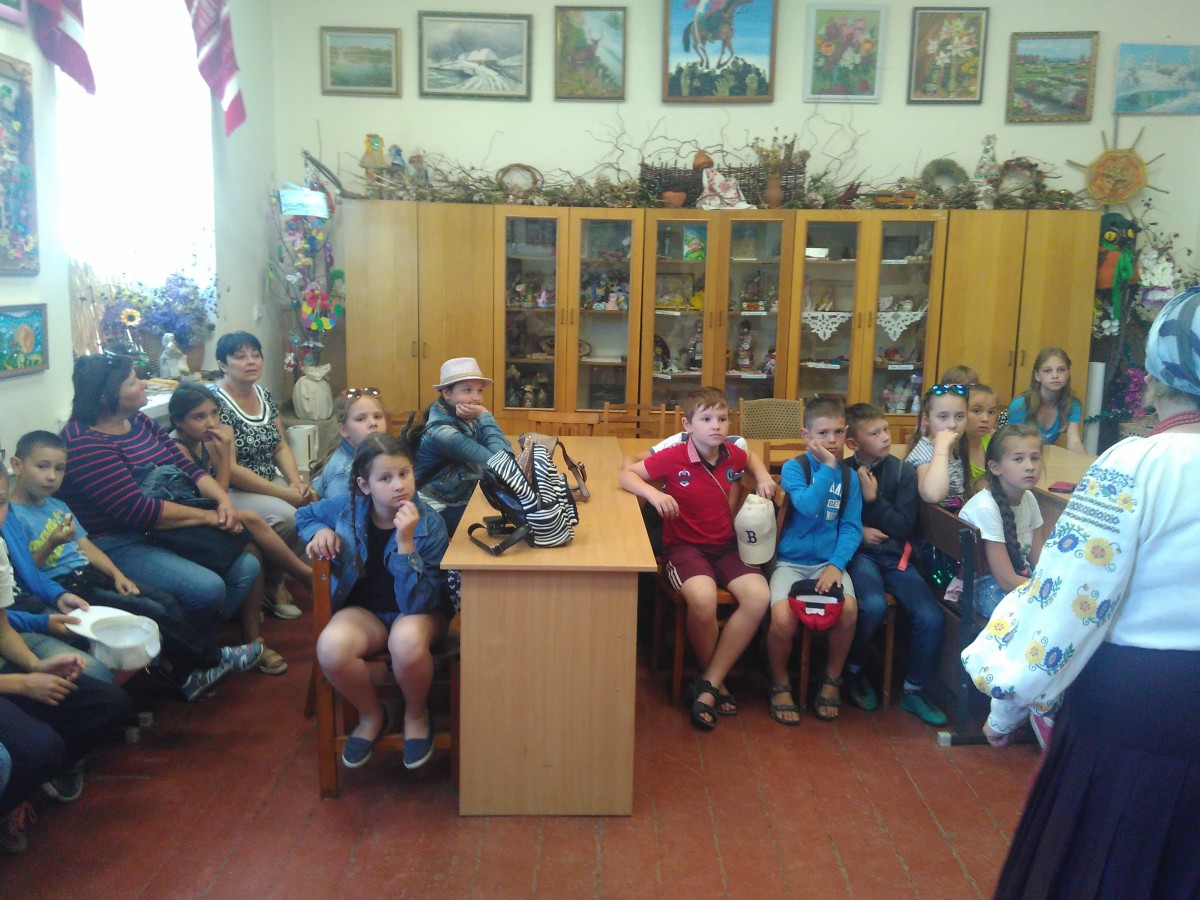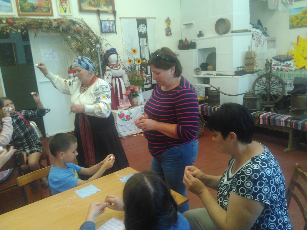 Вже в самій Світлиці, хазяйкою якої є керівник гуртка народознавства Олена Кравчун, відбулося знайомство з минувшиною. Олена Іванівна розповідала про побут та звичаї українців, про проведення народних свят на гуртку, читала казки, записані в Борисполі Павлом Чубинським, проводила майстер-класи з виготовлення ангела та пропонувала народну гру «Дід Макар», в якій діти із задоволенням взяли участь. Кілька майстер-класів з виготовлення іграшки провела член Творчого клубу «Спілка митців Борисполя» Тетяна Цівун. Бібліотекар теж приймала активну участь у проведенні заходів у Світлиці.