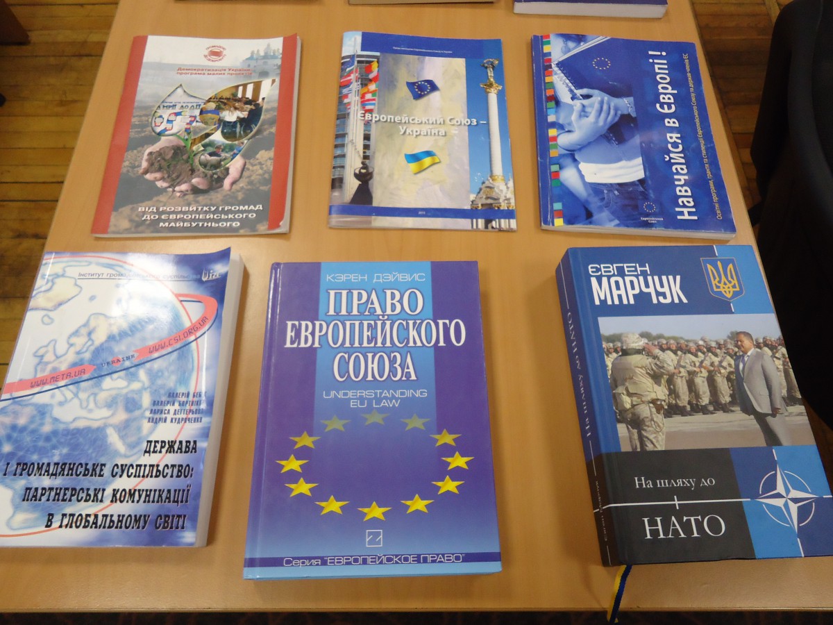 Було проведено вікторину «Європейські перегони», спрямовану на розширення знань про Європу і країни, що входять до складу ЄС. До уваги слухачів була представлена книга Євгена Марчука «На шляху до НАТО» та тематична розкладка літератури з фондів бібліотеки.