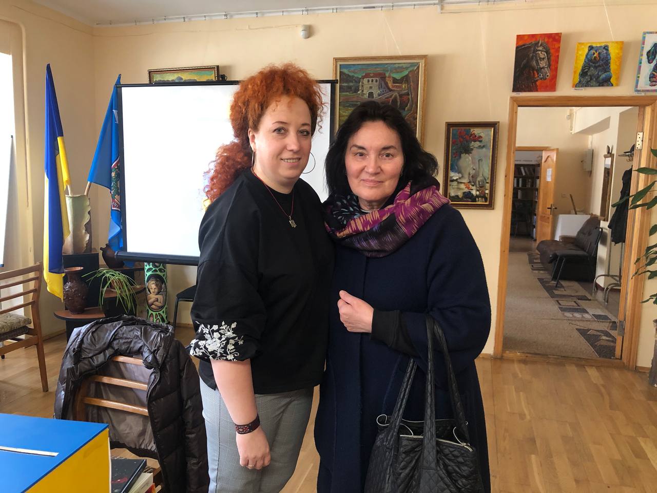 Бібліотекарі Олена Шкребтієнко та Людмила Базікалова разом з директоркою Жанною Кручиніною прочитали поезії Віолетти з різних збірок.