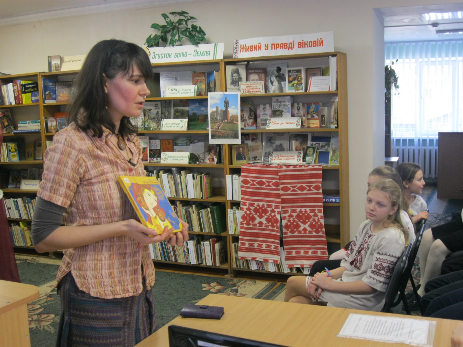 А далі ведуча запросила до слова гостю. Зустріч пройшла в цікавій невимушеній атмосфері. Дзвінка розповіла про свої книги, написані для дітей, а потім прочитала кілька казок зі своєї книги «Казки П’ятинки». Діти ставили безліч питань, на які письменниця із задоволенням давала відповіді.