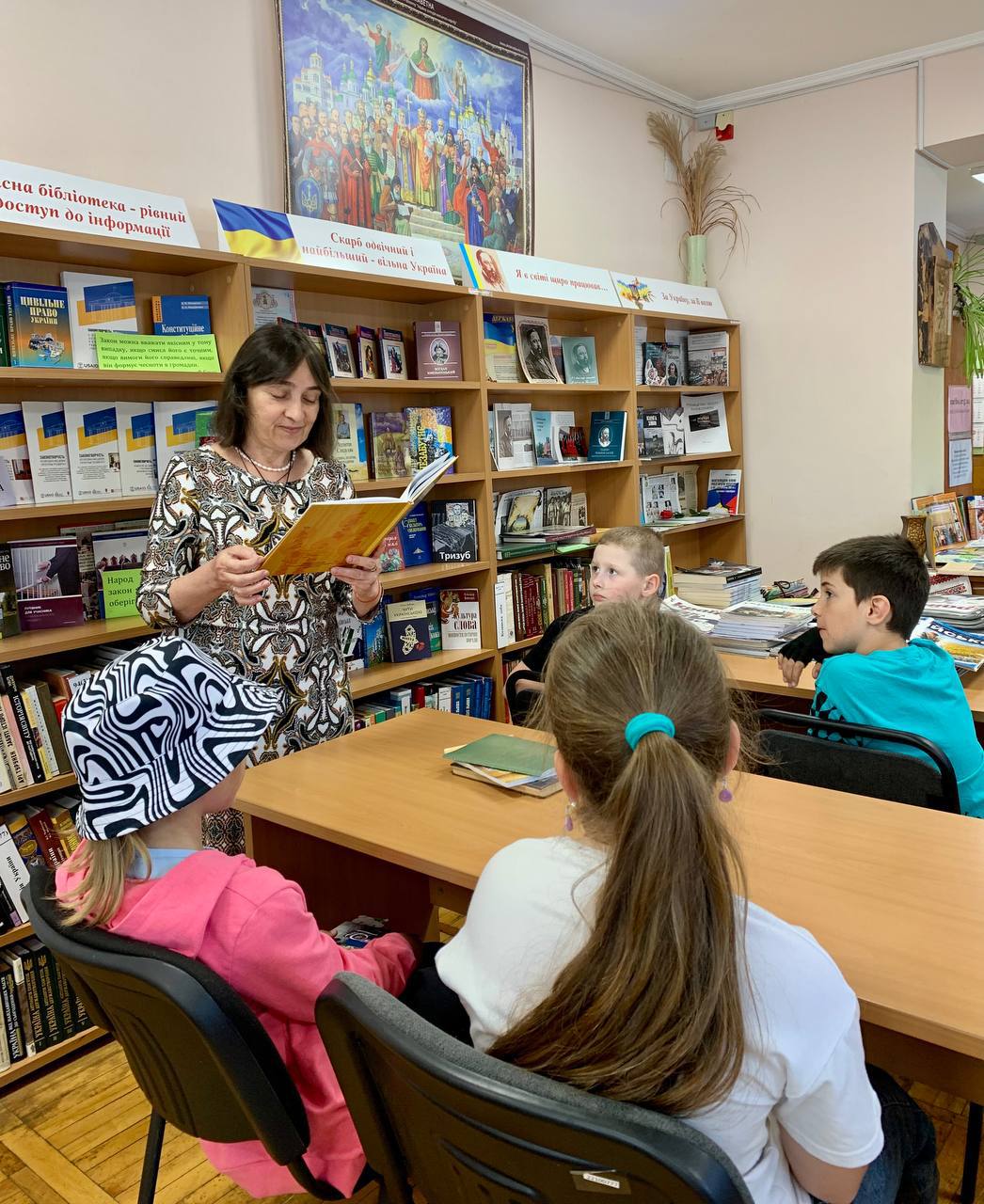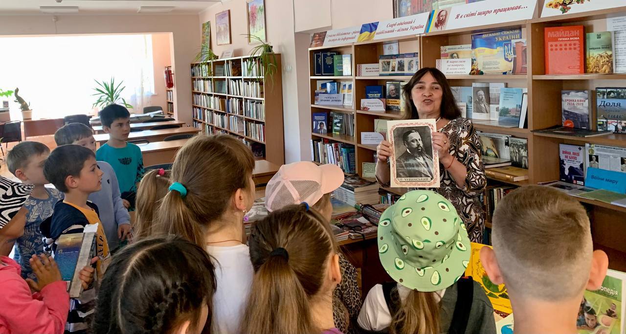 Директор бібліотеки Жанна Кручиніна представила школярикам постаті Павла Чубинського, творця Державного Гімну України; Вʼячеслава Чорновола, імʼя якого носить бібліотека; Сергія Жигалка, бориспільця, письменника, журналіста, якого було репресовано і розстріляно комуністичним режимом 1938 року.