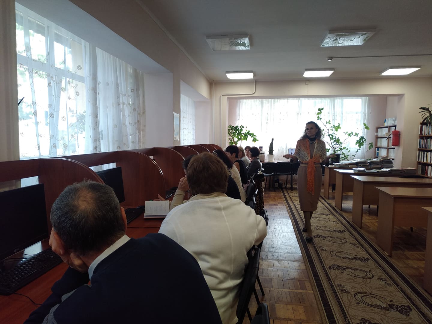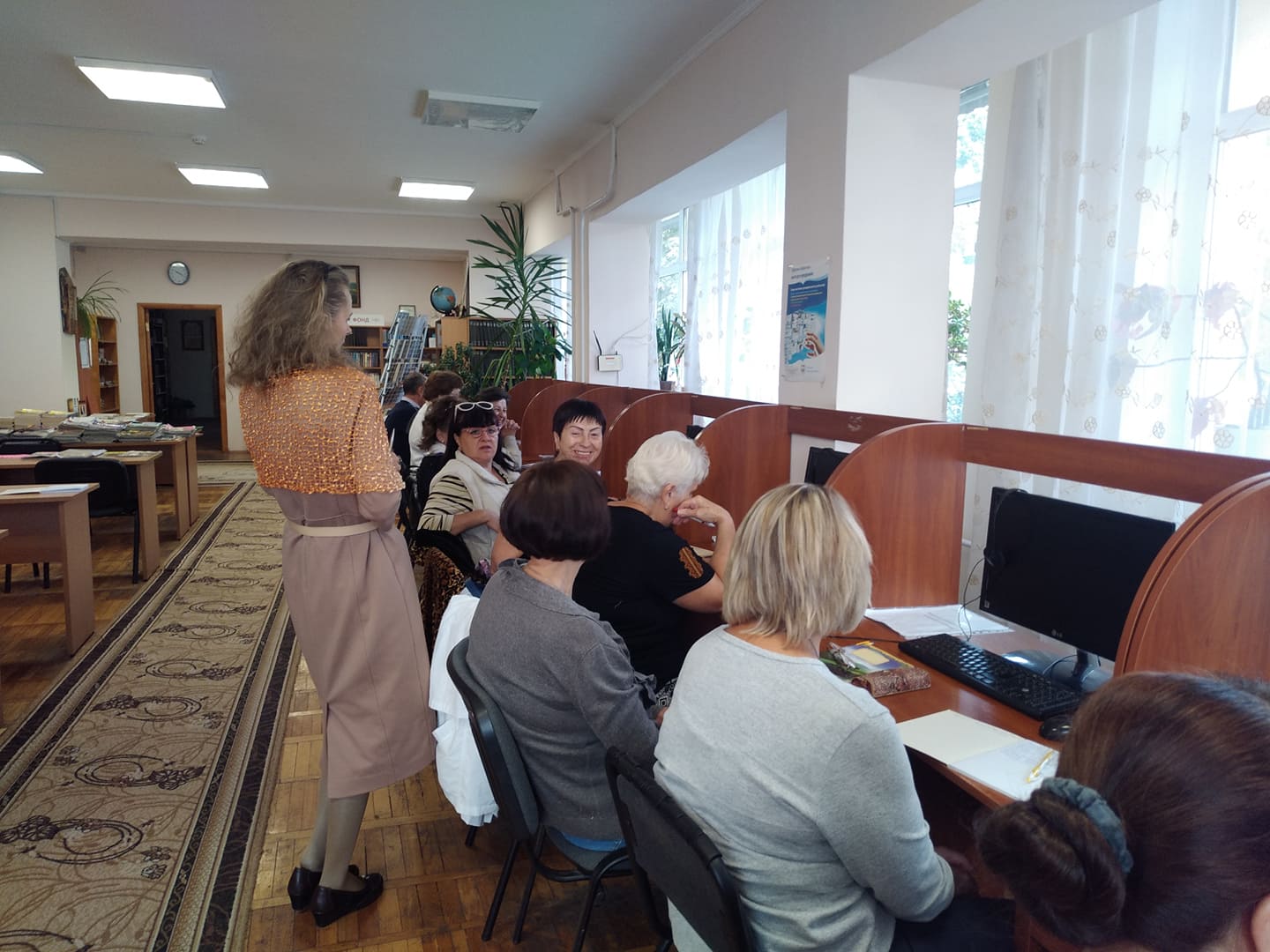 Заняття розпочалося з урочистої частини, яка пройшла в інформаційно-довідковому центрі бібліотеки. Продовження першого заняття відбулося в читальному залі за комп’ютерами. Слухачі розглянули тему « Введення в предмет «Комп’ютерна грамотність»».