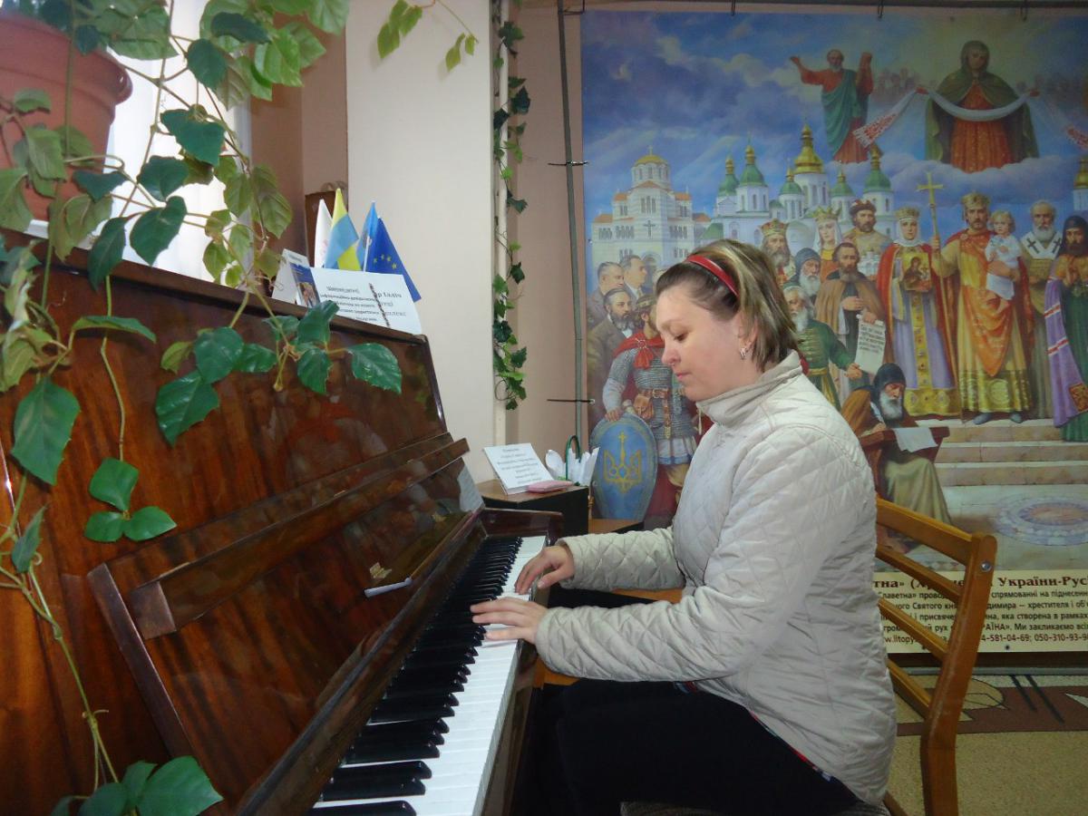До вражень від перегляду живописних робіт та почутого додалась ще й музика – адже в залі є піаніно. Вихователь Олена Володимирівна виконала декілька музичних творів.