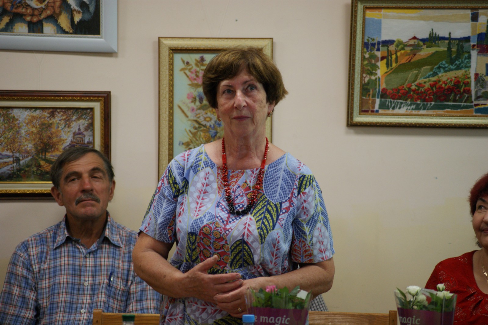 З вітальним словом до Ольги Боровко звернулася Людмила Пасенко, заступник Бориспільського міського голови. Наталія Погребна, начальник Управління культури, молоді та спорту, вручила Ользі Федорівні Подяку за популяризацію мистецтва вишивки та з нагоди відкриття першої персональної виставки.