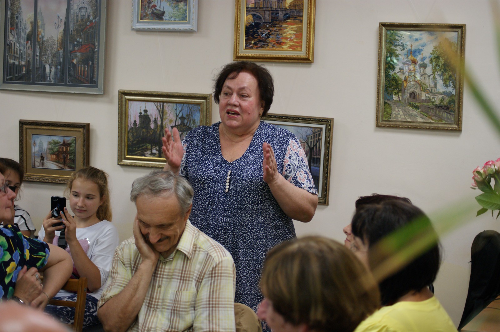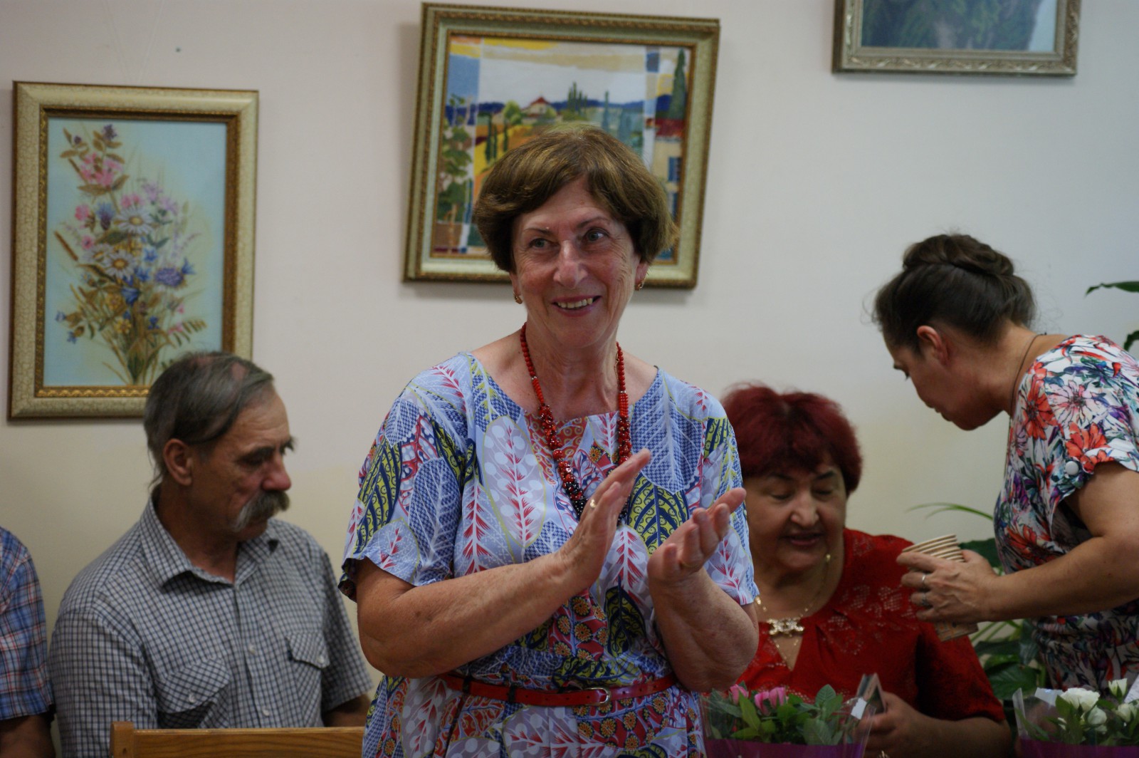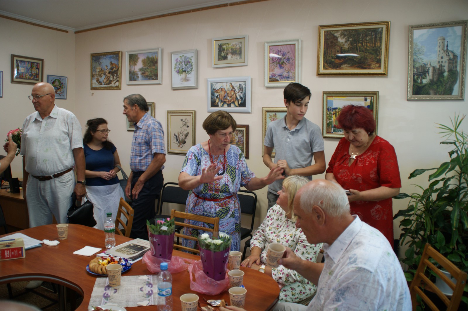 Привітати майстриню на свято завітали її рідні, друзі та знайомі, читачі бібліотеки. Серед них ВолодимирТатаренко, Володимир Литвин, Тетяна Павленко, Лідія Гончар-Татаренко, Ніна Крупчан, Михайло Боярко.