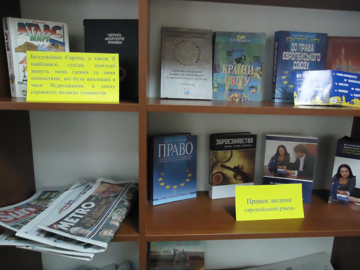 Протягом останнього року щомісяця бібліотечними працівниками проводились заходи, спрямовані на детальніше знайомство з європейськими країнами та устроєм ЄС. В травні місяці до мережі пунктів європейської інформації приєдналась міська дитяча бібліотека, яка створила куточок європейської інформації.