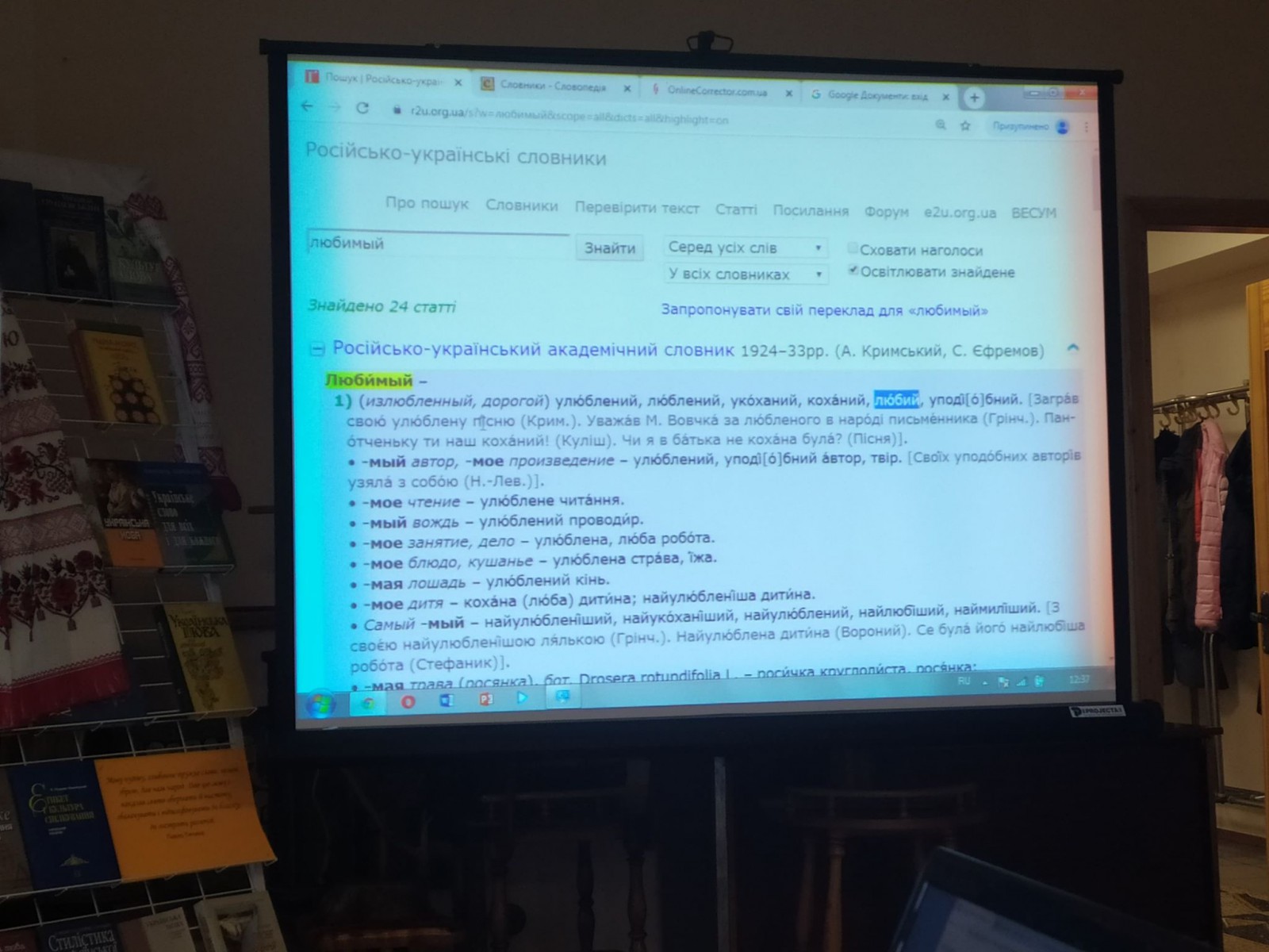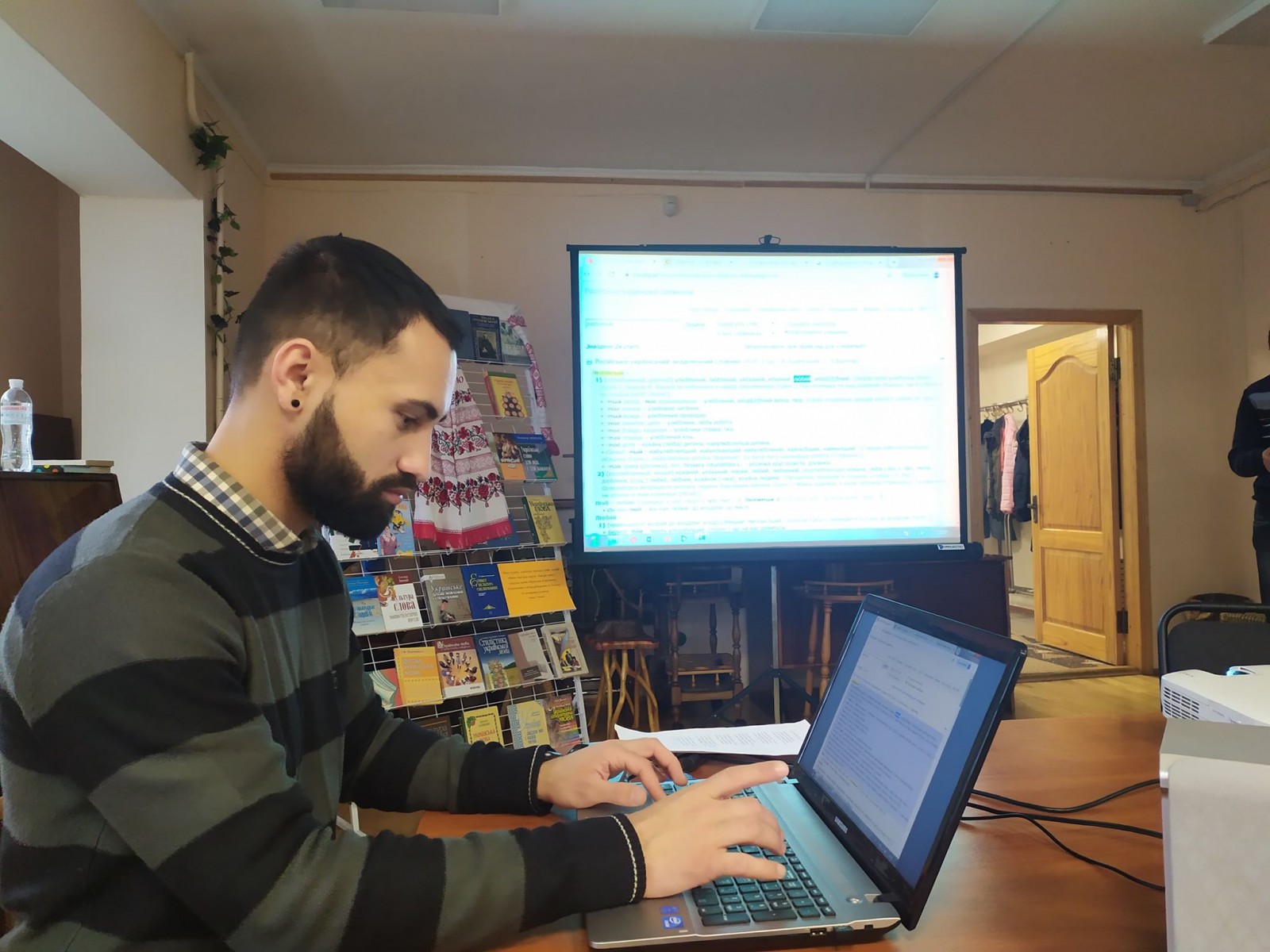 Також присутнім було продемонстровано сайти, де можна перевіряти тексти на правильність. Окремо поговорили про нові модні іншомовні слова, які заполонили наш мовний простір, такі як лайк, коллаборація, лайфхак. Чи можна ім знайти аналоги в українській? - тут же перевіряли на сайті «Словотвір». Захоплююча лекція з багаточисельними прикладами надихнула присутніх, всі погодились, що вдосконаленню мови немає меж. А місцевий поет-пісняр Михайло Боярко заспівав свою нову пісню «Ода українській мові», текст якої лектор Віталій теж перевірив на правильність.