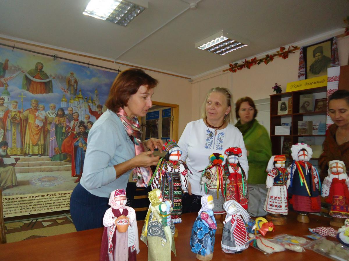 На зустріч завітали народні майстри - подружжя Кравчунів. Олена Іванівна представила свою колекцію ляльок-мотанок і цікаву розповідь про історію виникнення української ляльки, її особливості на Бориспільщині, поінформувала присутніх про діяльність "Бориспільської спілки художників". Сергій Степанович продемонстрував декілька своїх картин та представив книгу "Казочки з Баришполя", наголосивши на важливості вивчення літературної та наукової спадщини нашого земляка Павла Платоновича Чубинського.