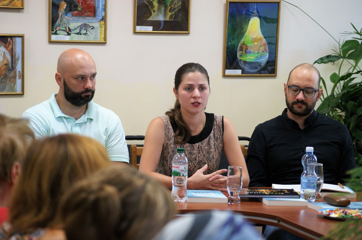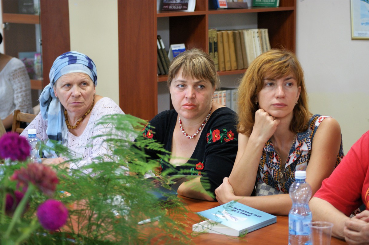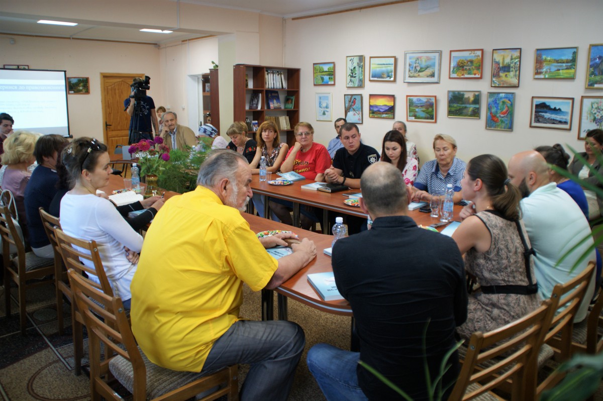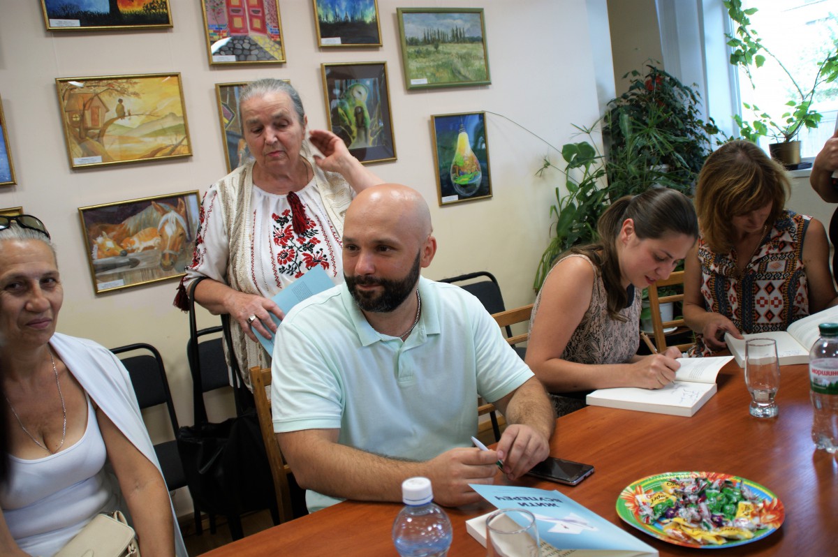 Заступник бориспільського міського голови Людмила Пасенко розпочала зустріч з наголосу на актуальності цієї теми і теми війни, яка не може лишати нікого осторонь. Особливо неочікуваною і змістовною стала розповідь співавтора книги Катерини Котлярової про жорстокі задокументовані реалії окупованих територій, про діяльність збройного угруповування «Бетмен» та справжні жорстокі людські злочинства. Денис Денисенко, правозахисник, голова ГО активний учасник багатьох заходів у бібліотеці та співавтор книги теж розповів про те як збирався і підпорядковувався матеріал книги. Швейцарець Сімон Шлегель в свою чергу розповів про ідею створення збірки, про важливість підняття теми життя цивільного населення на Донбасі. Не змогли залишитись осторонь дискусії почесний гість Леонтій Сандуляк і поет Михайло Боярко . Як завжди розмови перейшли у русло вічних цінностей – патріотизм, мовні питанняі, про тих , хто воює за Україну на Сході, болюча тема війни для кожного.