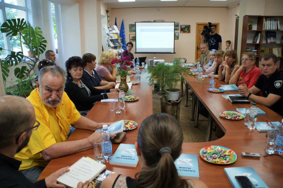 6 вересня 2018 р. в приміщенні Бориспільської міської бібліотеки відбулась презентація книги «Жити всупереч. Проблеми цивільного населення під час війни на Донбасі». На заході були присутні співавтори книги, члени коаліції громадських організацій «Справедливість заради миру на Донбасі» Катерина Котлярова, Денис Денисенко, Сімон Шлегель (міжнародний менеджер проекту, Швейцарія- Німеччина), представники поліції, внутрішньопереміщені особи, бібліотечні працівники, громадські активісти.