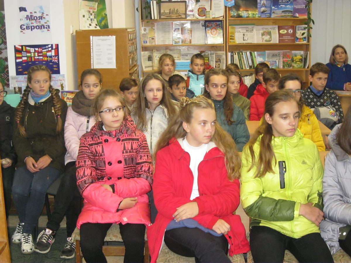 12 жовтня 2017, напередодні свята Захисника Вітчизни, до Бориспільської міської дитячої бібліотеки були запрошені учні 7-А класу ЗОШ № 6 на Годину патріотичного виховання «Живе України і слава, і воля». Діти зустрілись з воїном – учасником АТО Володимиром Олександровичем Гребенніковим.