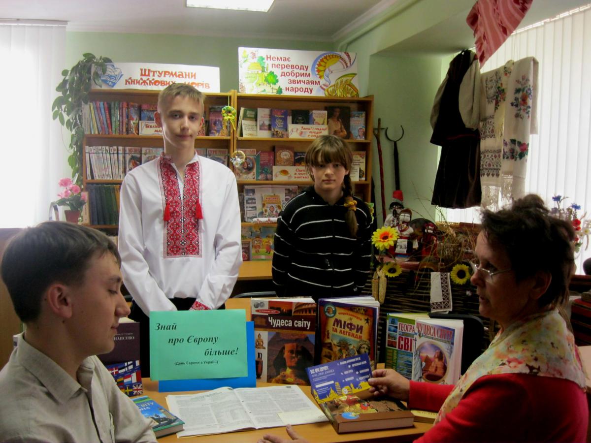 13 травня 2017 в міській дитячій бібліотеці до Дня Європи в Україні розгорнуто тематичну викладку літератури «Знай про Європу більше». Провідний бібліотекар Надія Смоліна ознайомила маленьких відвідувачів з представленою літературою.