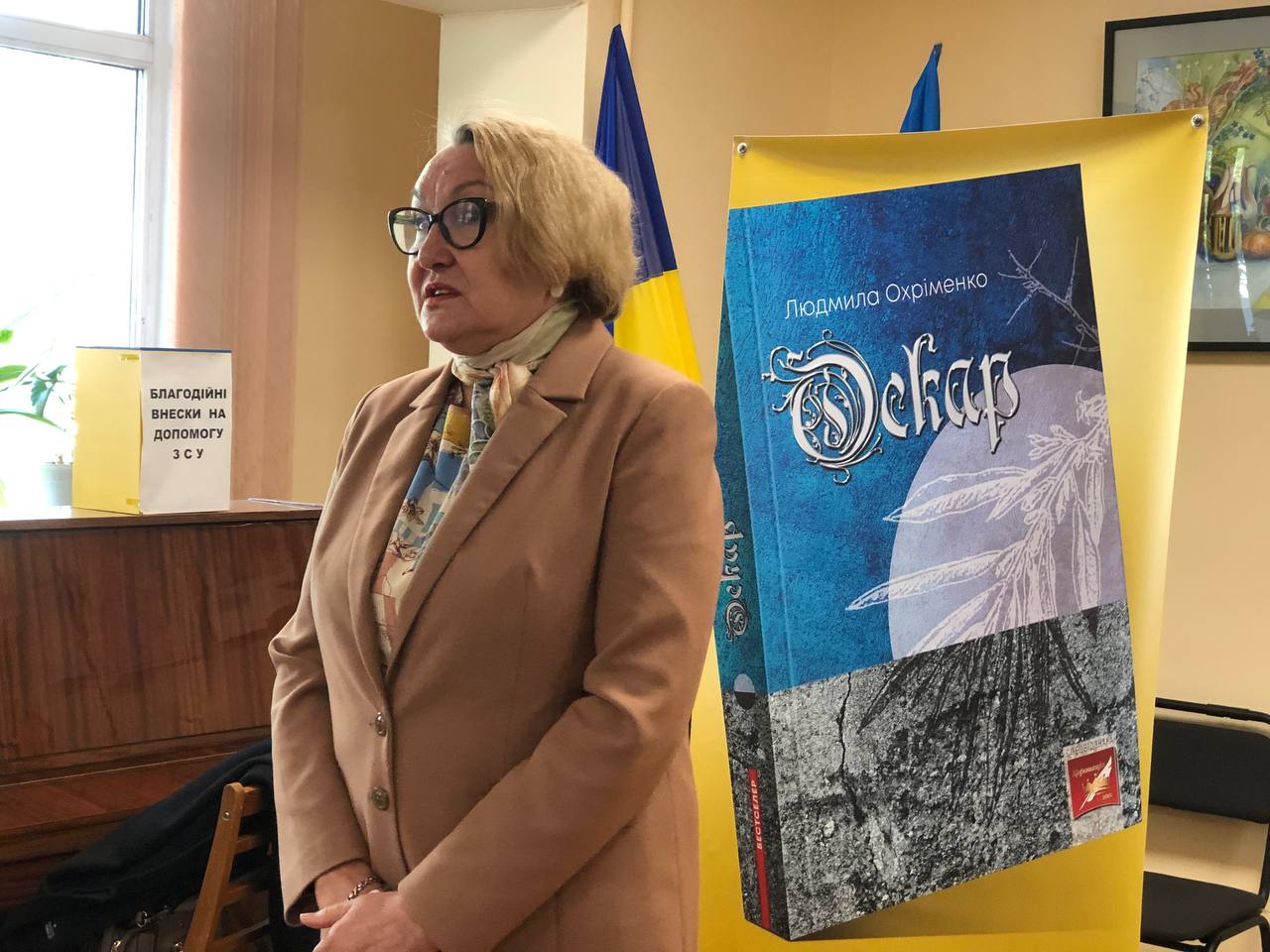 2 травня 2023 в Бориспільській публічній бібліотеці ім.В'ячеслава Чорновола відбулась зустріч з Людмилою Охріменко, авторкою роману «Оскар». Роман став кращою книгою на воєнну тематику Міжнародного літературного конкурсу "Коронація слова» в 2021 році.